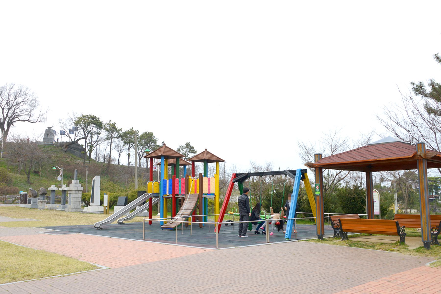 옥녀봉공원에 오르면 어린이 놀이터와 편히 앉아 쉴 수 있는 벤치와 정자 등이 마련되어 있습니다.