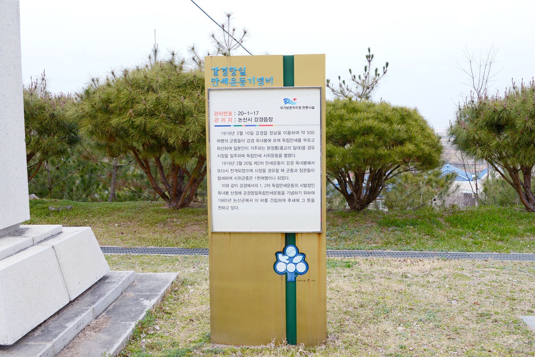 그 분들의 뜻을 기리기 위해 옥녀봉 공원에는 강경항일독립만세운동 기념비를 제작하여 후손들에게 중요한 역사적 현장을 알려주고 있습니다.
