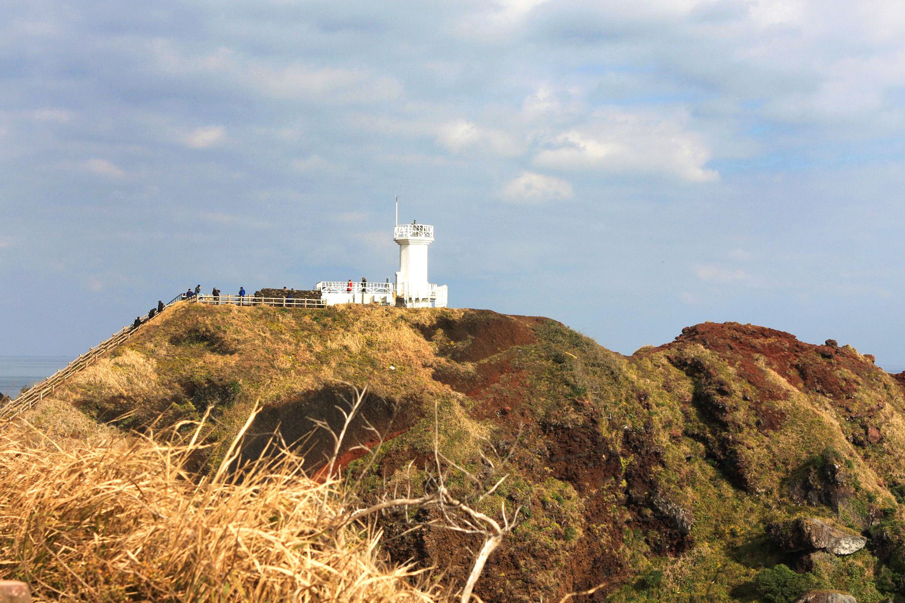 섭지코지에는 송이라는 붉은색의 화산재로 이루어진 언덕이 있습니다.