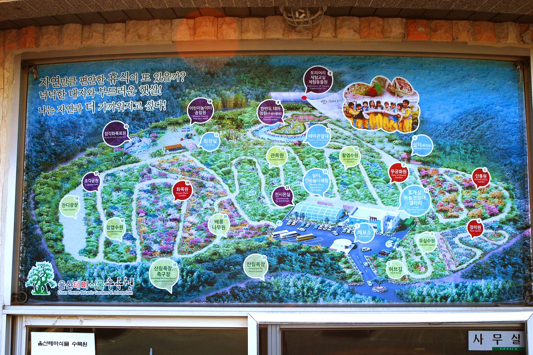 한반도의 지도를 형상화한 후에 각 시도를 상징하는 나무와 꽃등으로 꾸며진 테마정원은 한반도를 둘러싼 바다가 연상되는 연못도 조성되어 있고,