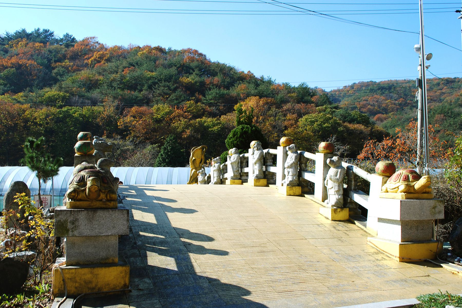 경내에 발을 들이기위해 출입하는 다리인 칠성교부터 사찰입구를 지키고 있는 해태상을 지나면 작지만 화려한