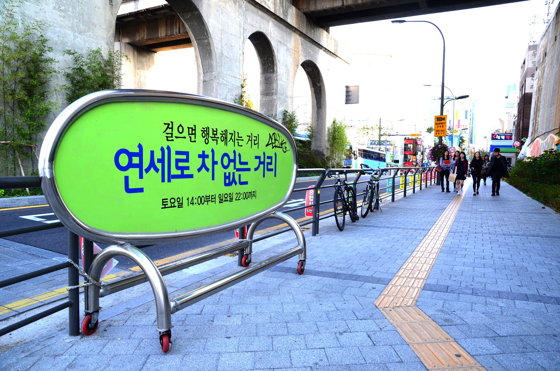 걸으면 행복해지는 거리. 연세로 차 없는 거리는