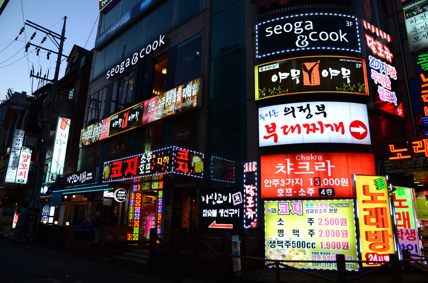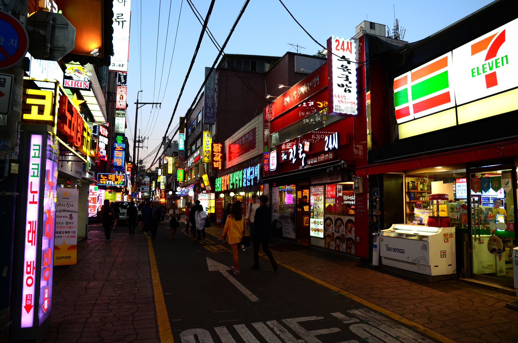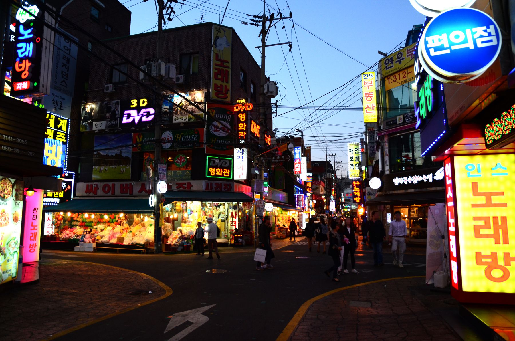 밤이 되면 젊은이들의 발걸음은 더 멈추지않는 것 같아요.