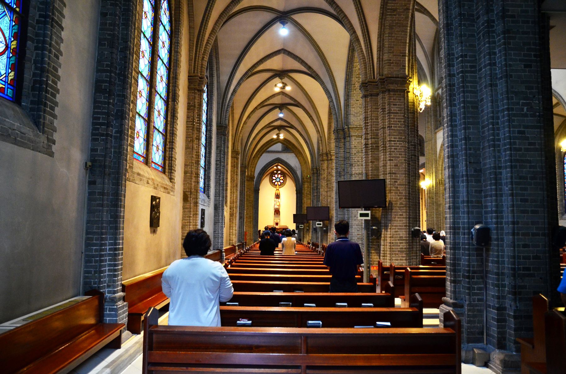 두 손을 모으고 기도하는 신자들의 모습이 성당만큼이나 아름다워 보입니다.