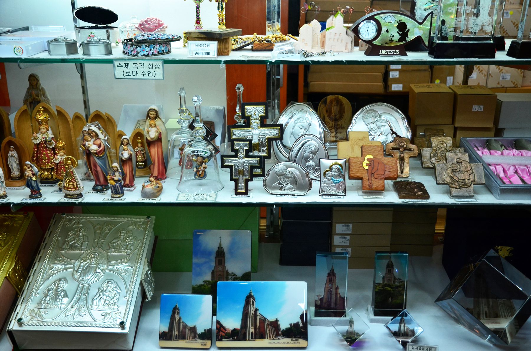 십자가, 묵주, 성모상, 미사보 등 다양한 성물을 판매하고 있는데요,