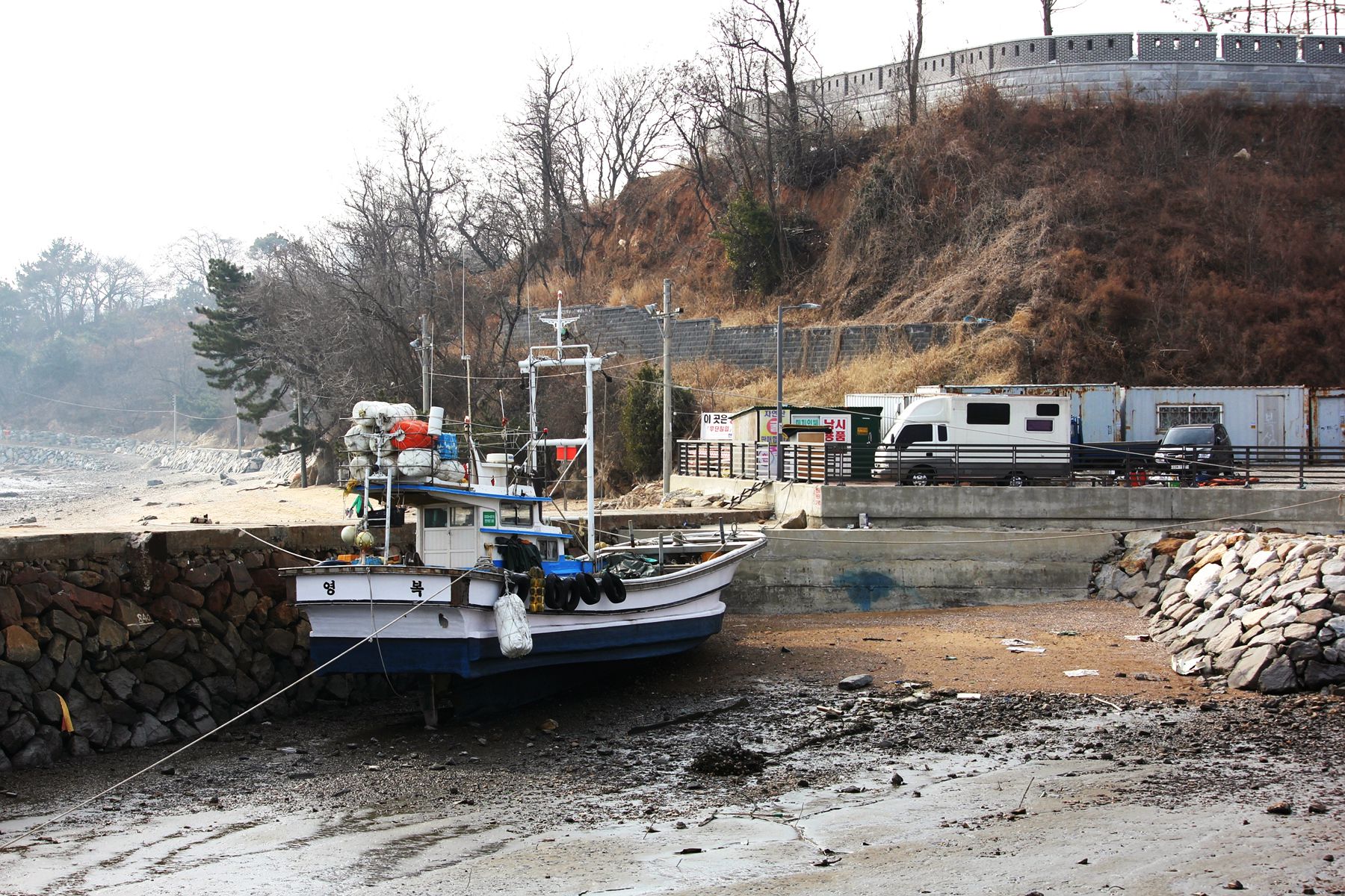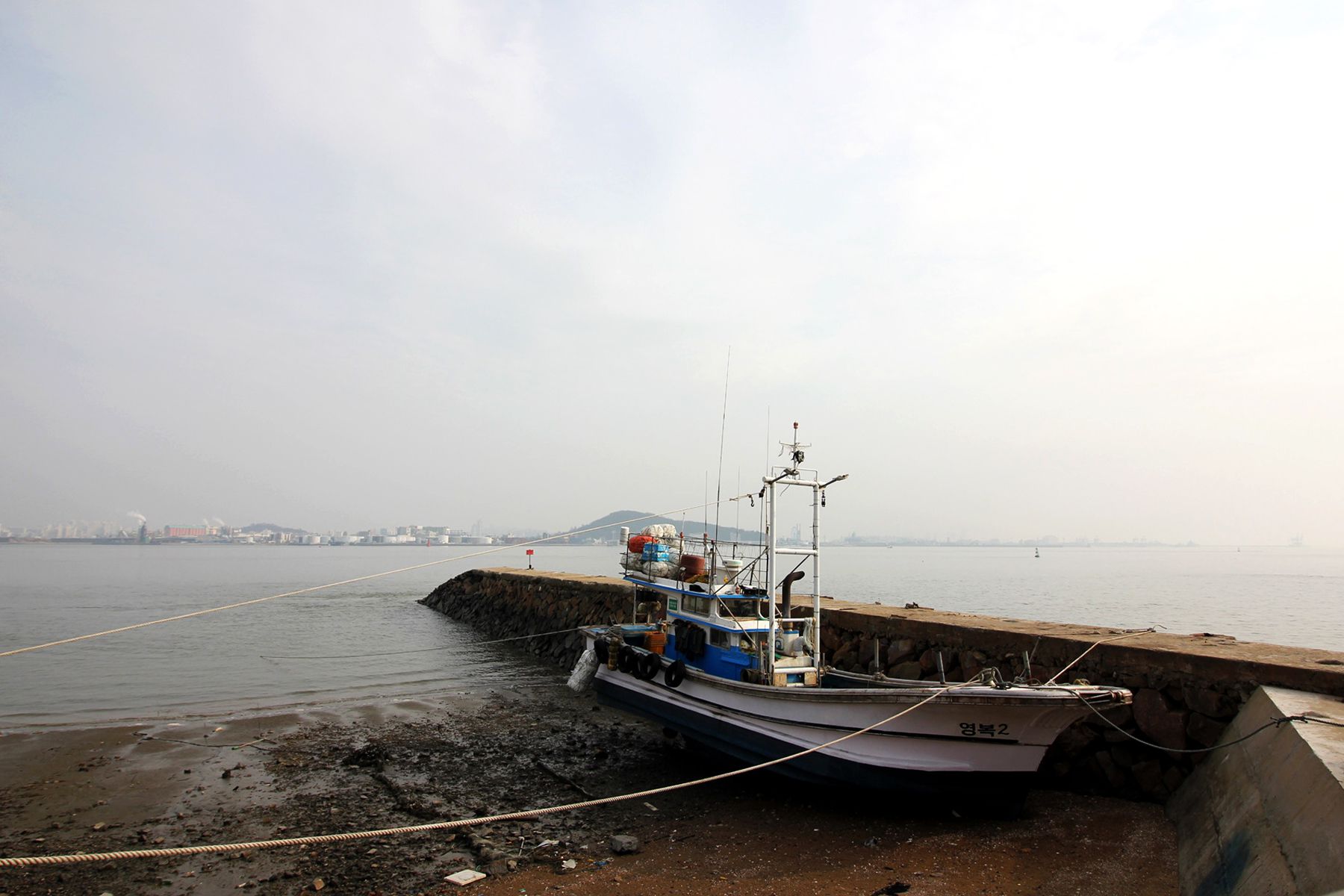바닷물이 바진 뻘위에 세워진 배한척이 한가로운 어촌마을의 풍경을 멋스럽게 장식하고 있습니다^^
