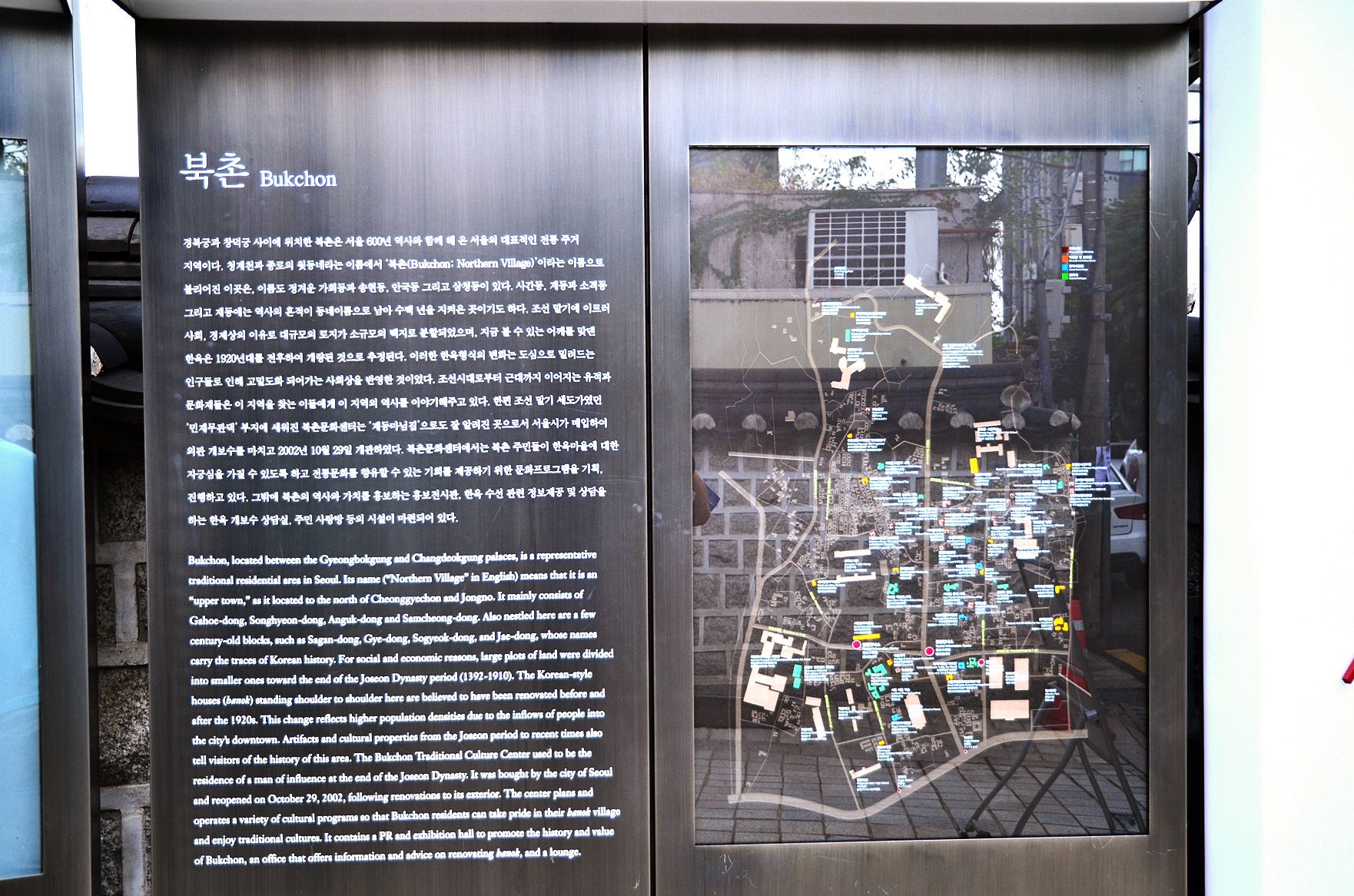 북촌 안내도와 설명서를 읽어 보면 북촌에 대해 자세히 알 수 있습니다.