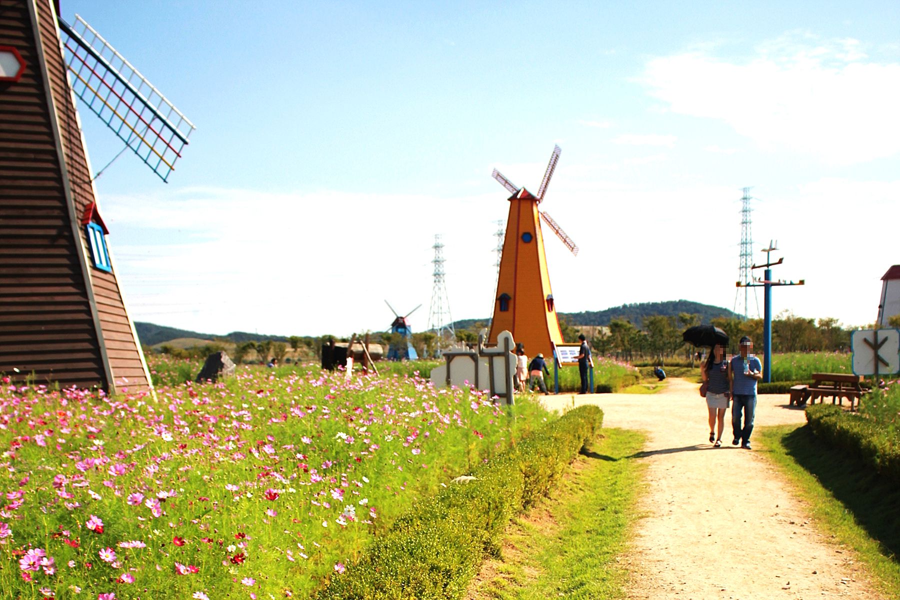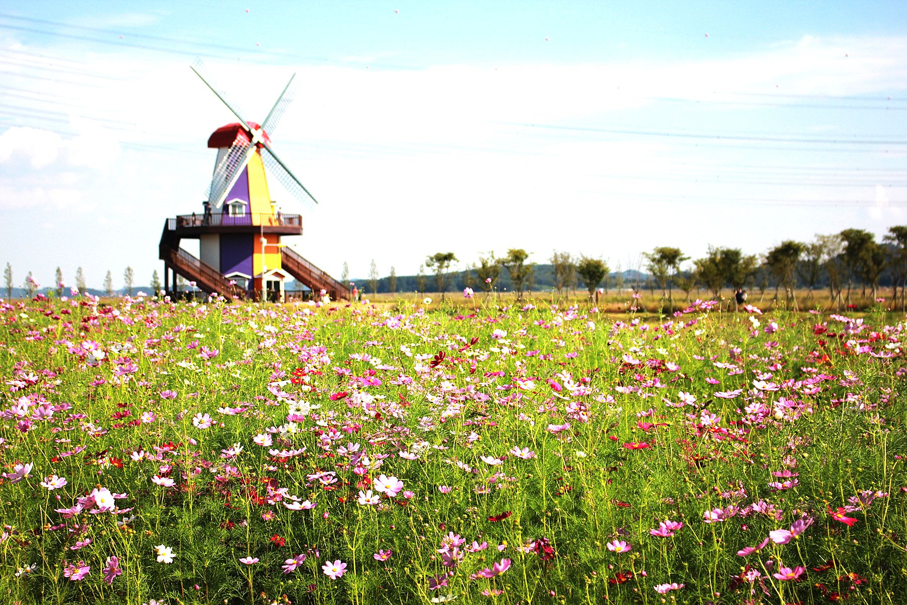 특히 코스모스가 피어있는 곳은 전국 어디든지 많겠지만 , 바다를 배경으로 이국적인 풍차와 함께