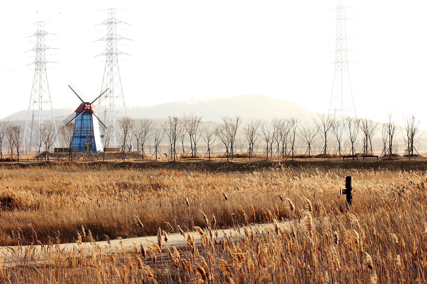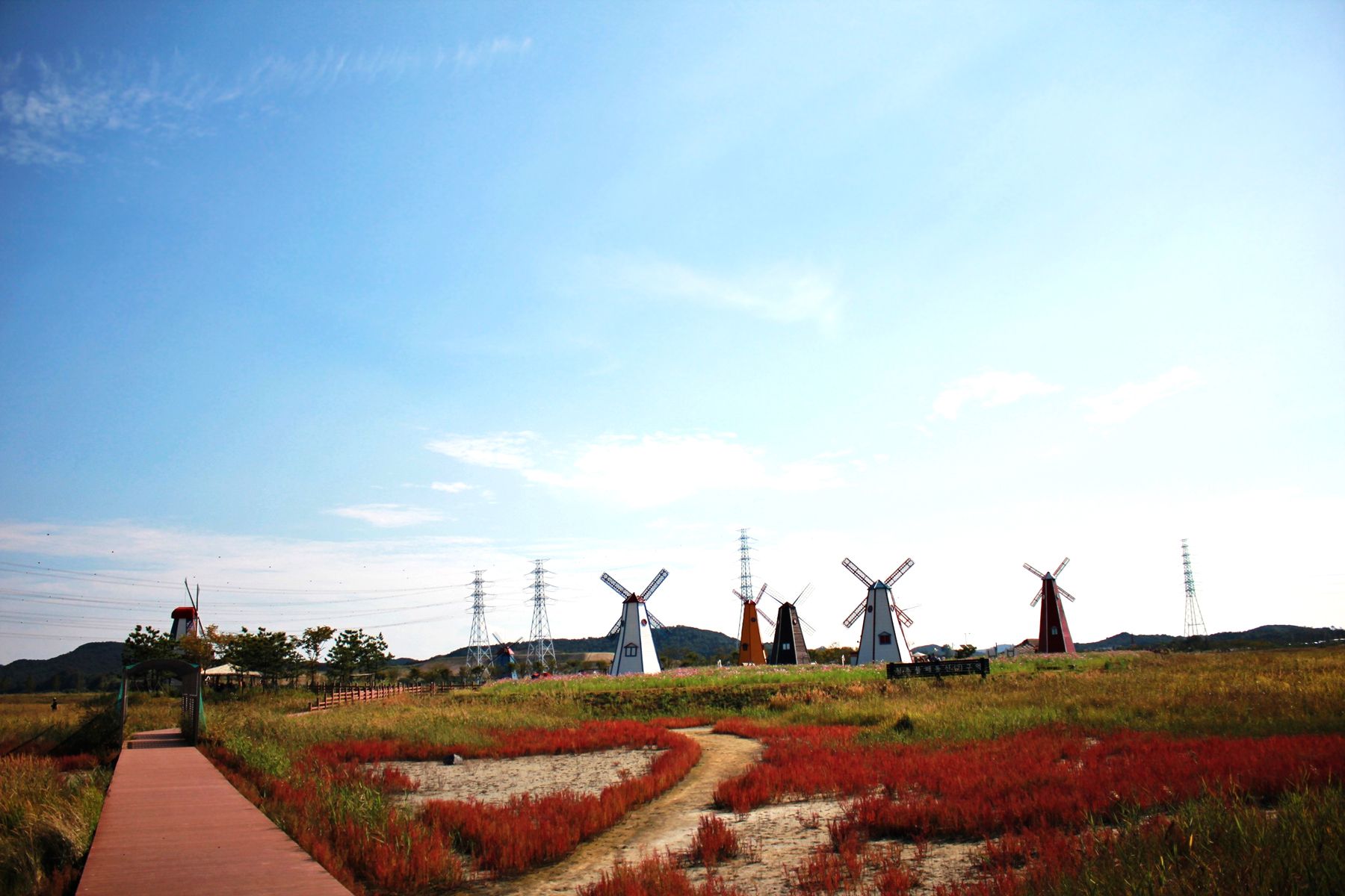바람개비도 있고 한적한 갈대밭과 이국적이고 아름다운 풍차를 보고 걷는길이 지루하지 않게