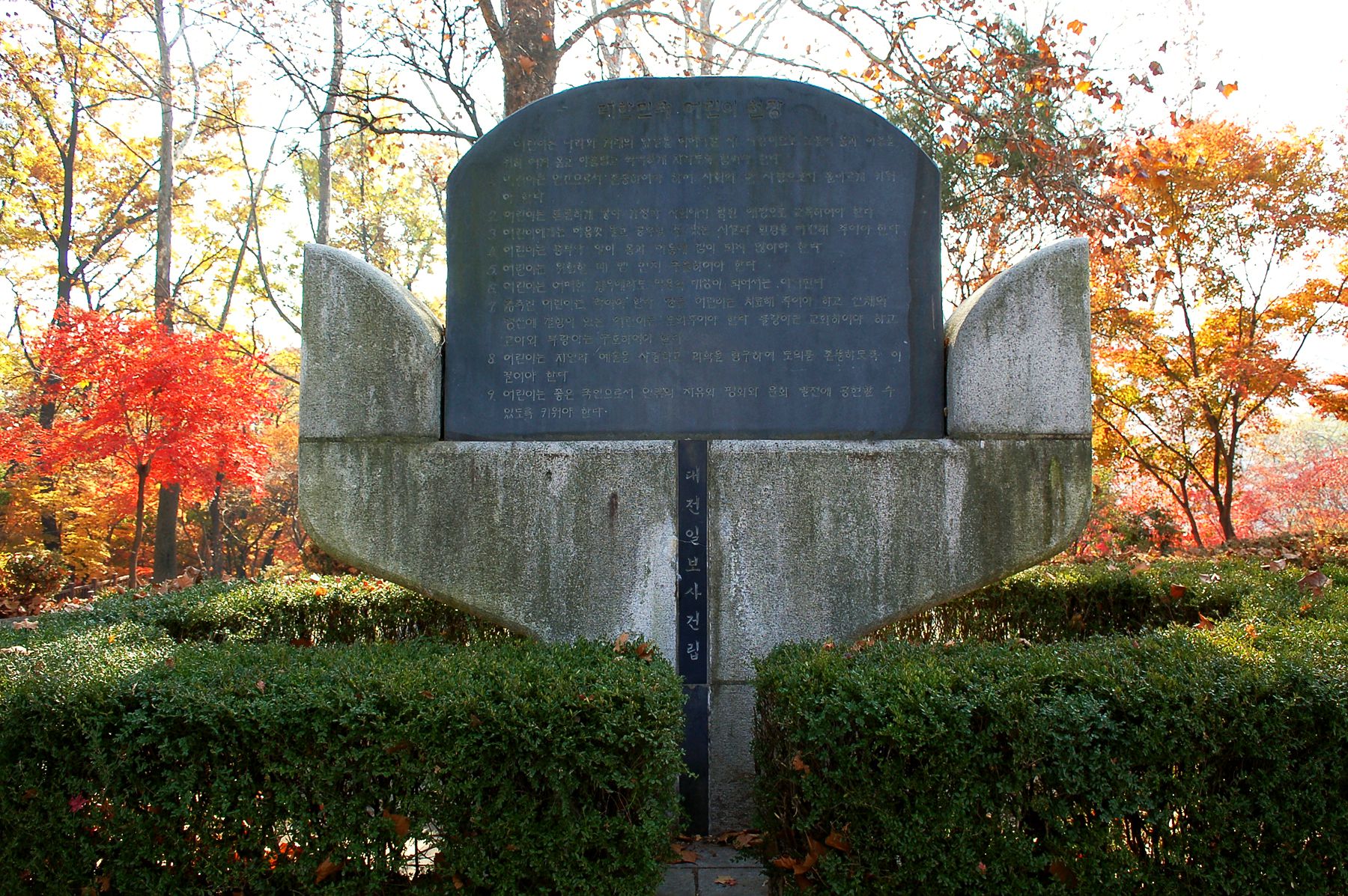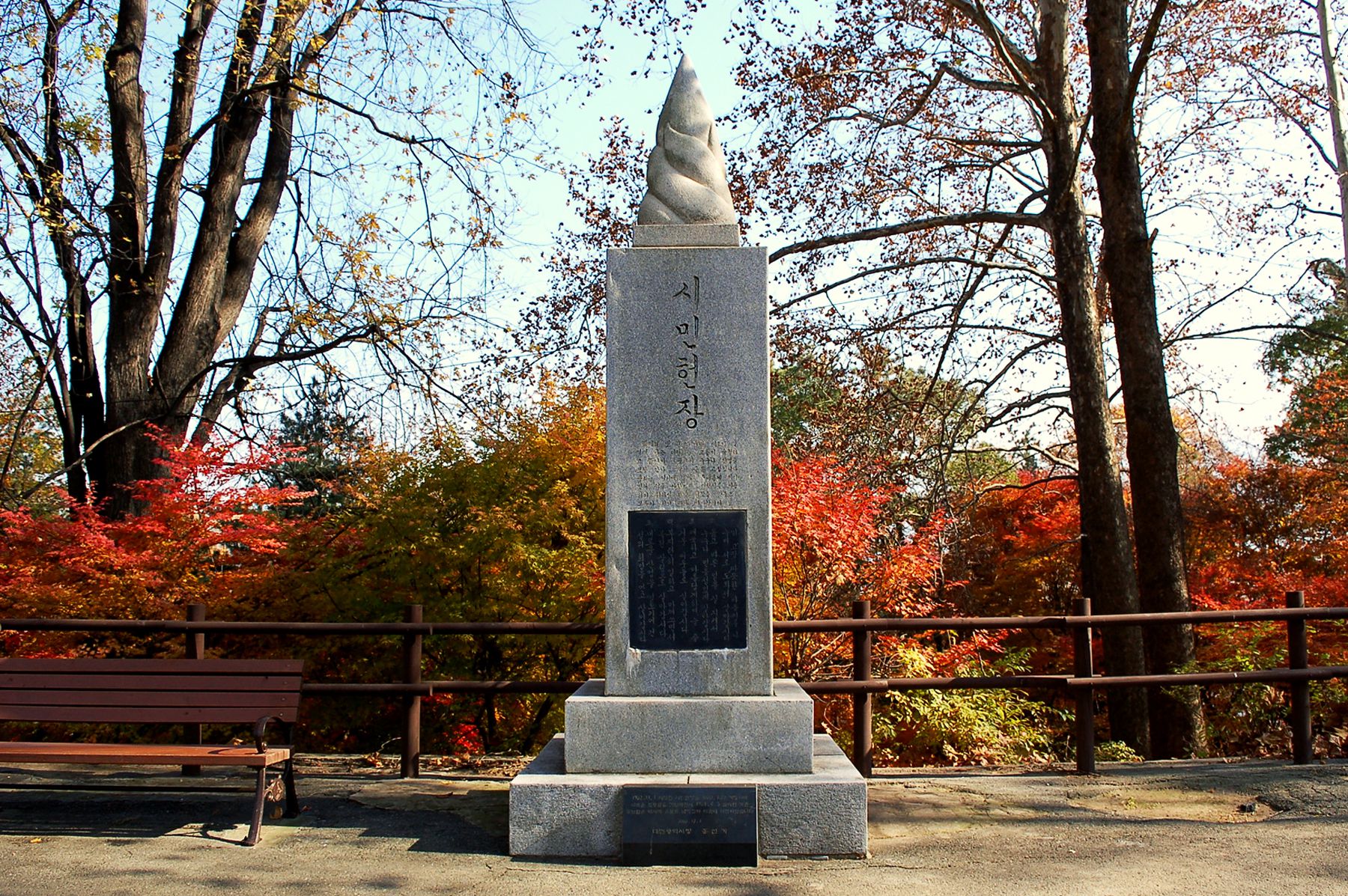 보운대 앞 광장에는 휴식을 할 수 있는 벤치가 놓여져 있고, 기념비도 세워져 있습니다.
