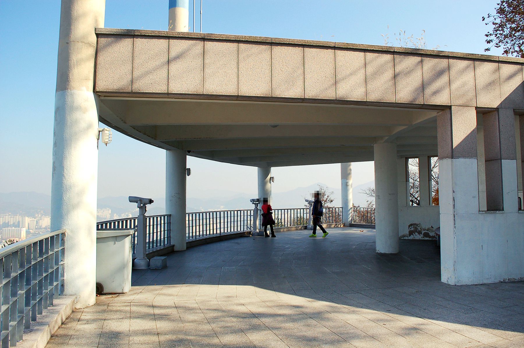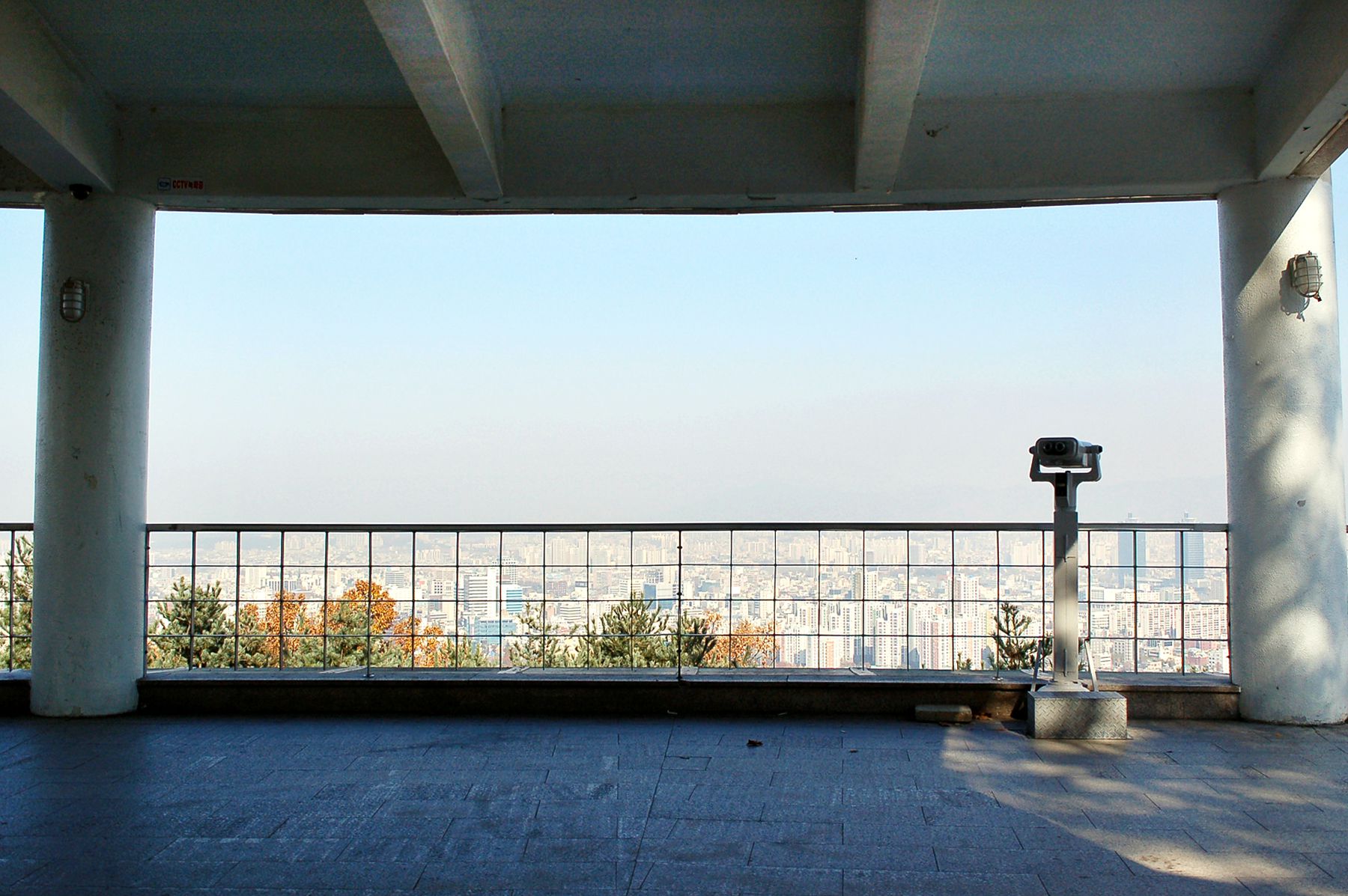 1층 휴게실 앞에서도 도시의 전망을 즐길 수 있지만 나무들이 있어서 시야를 가립니다.