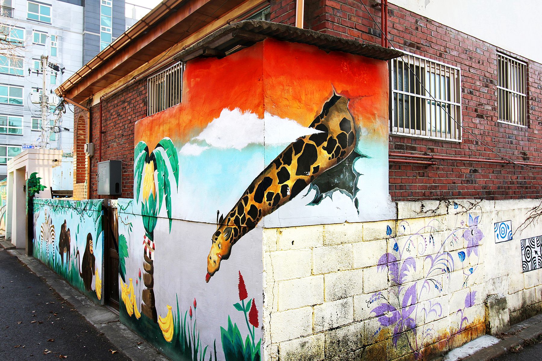 동네마다 있는 평범한 벽에서 아기자기하고 생동감 있는 벽화가 그려져 예쁜 마을로 재탄생하게 된 곳입니다.