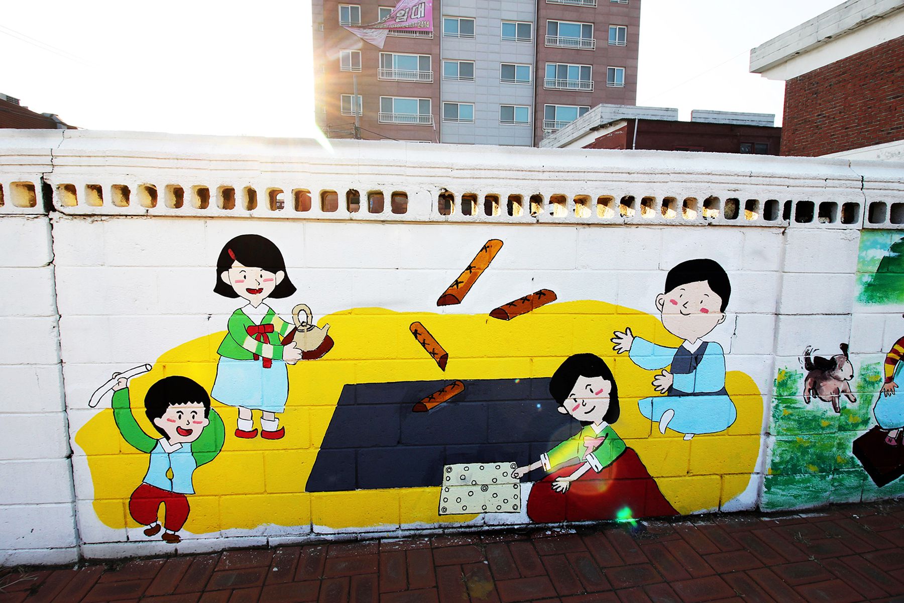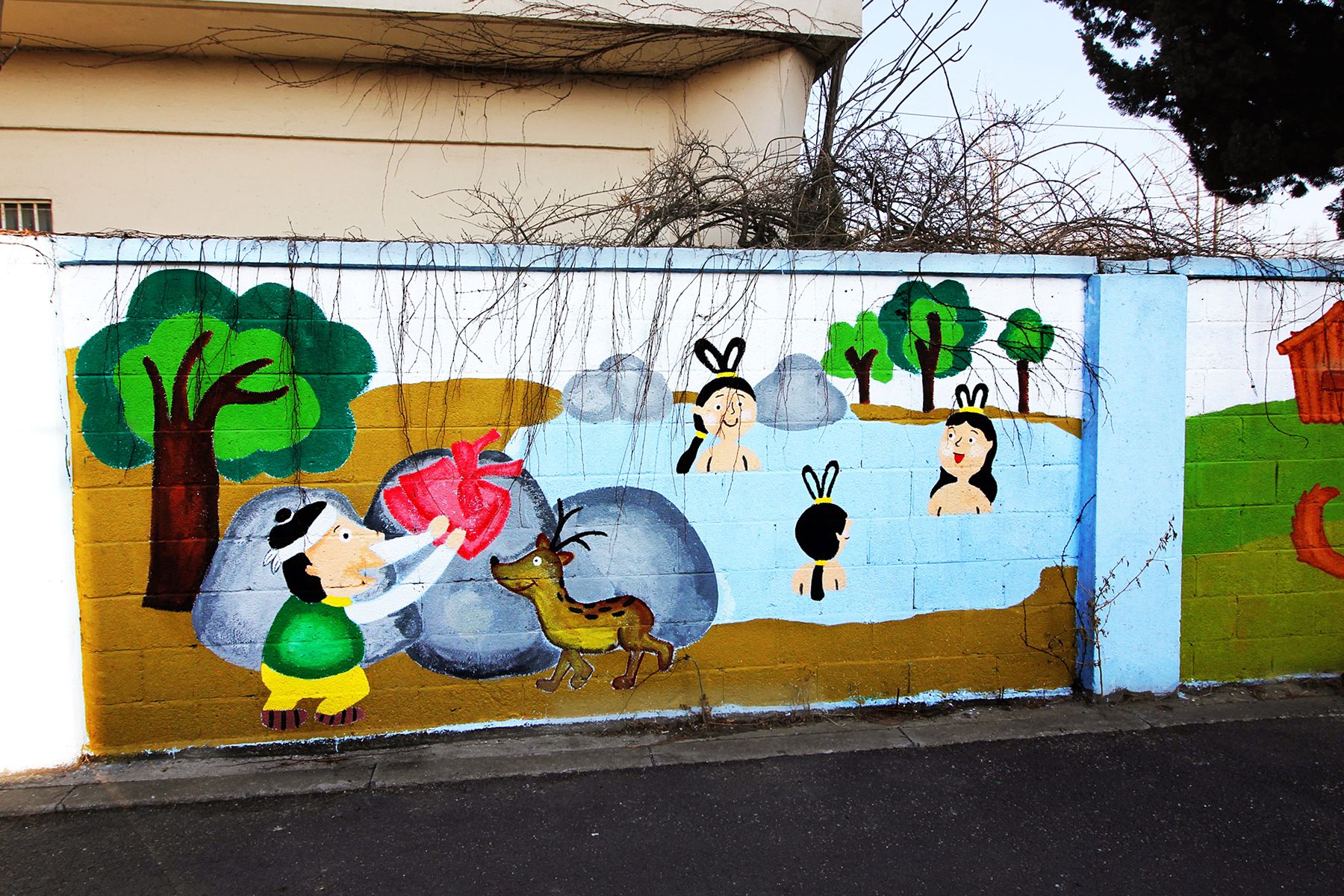 아이들, 어른들에게도 친숙한 전래동화와 이솝우화 이야기의 한 장면이 그려진 벽화도 있으며,