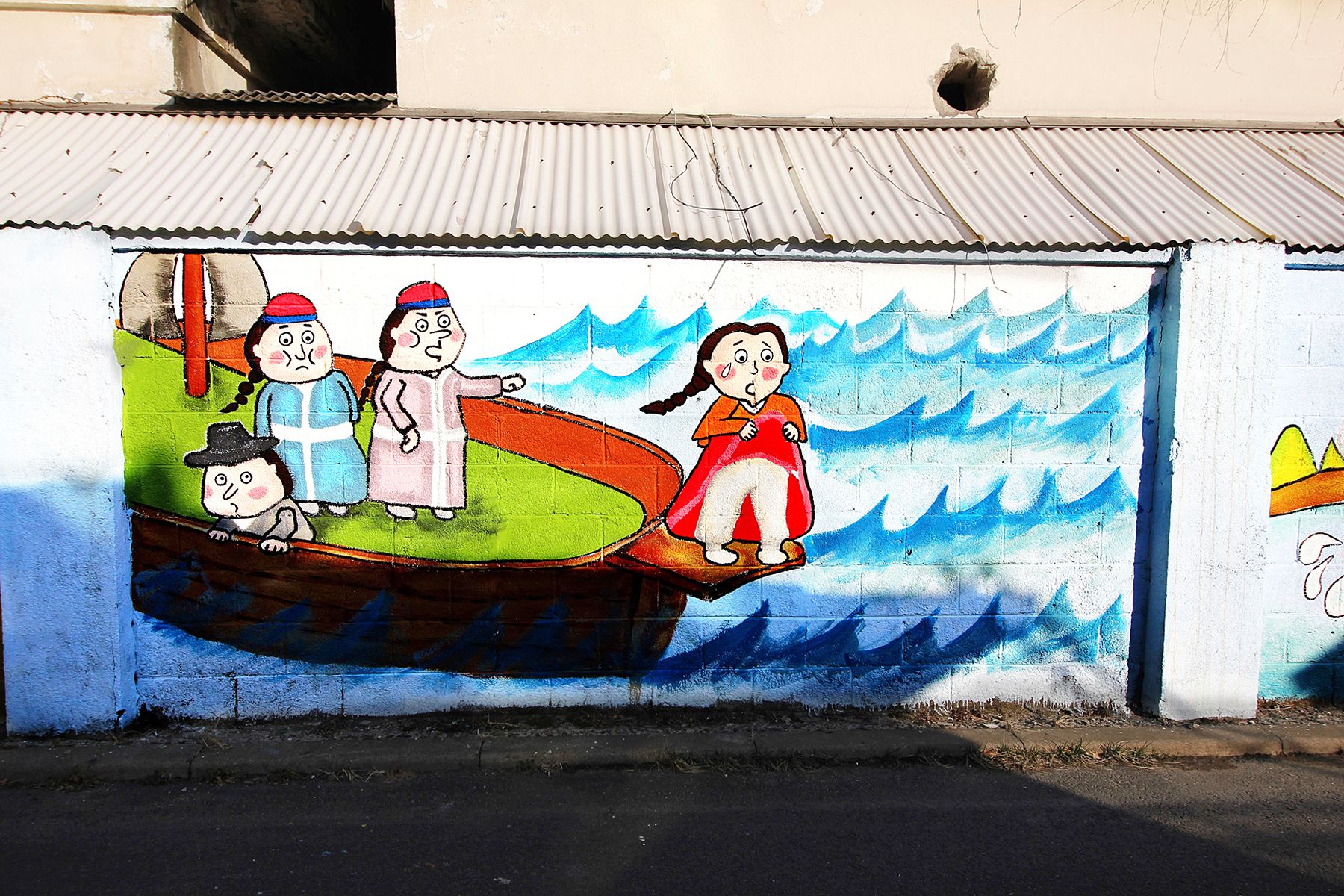 월미도를 찾는 외국인들에게 한국의 전통 모습을 보여주기 위해 그려진 벽화도 볼 수 있습니다.