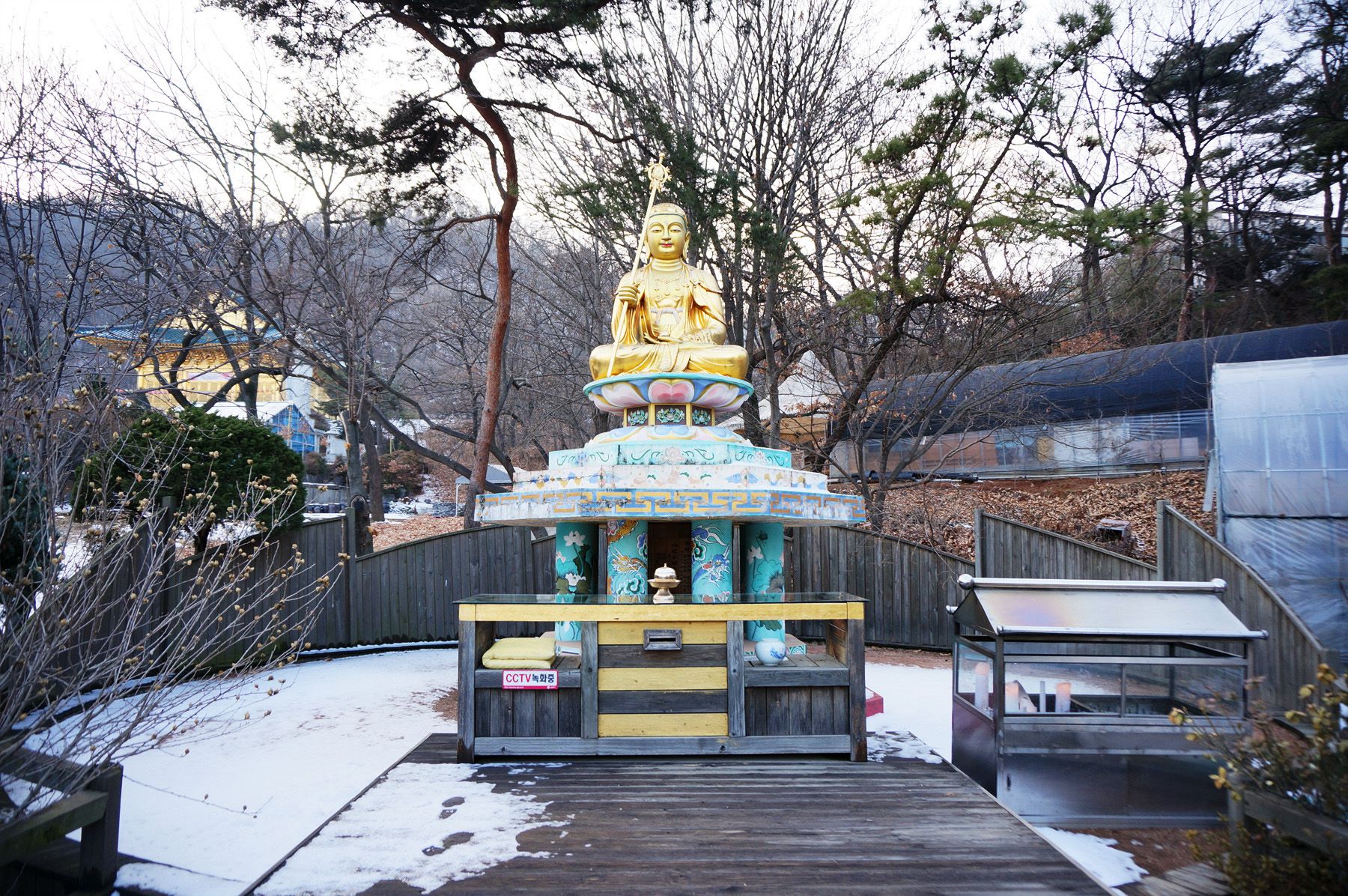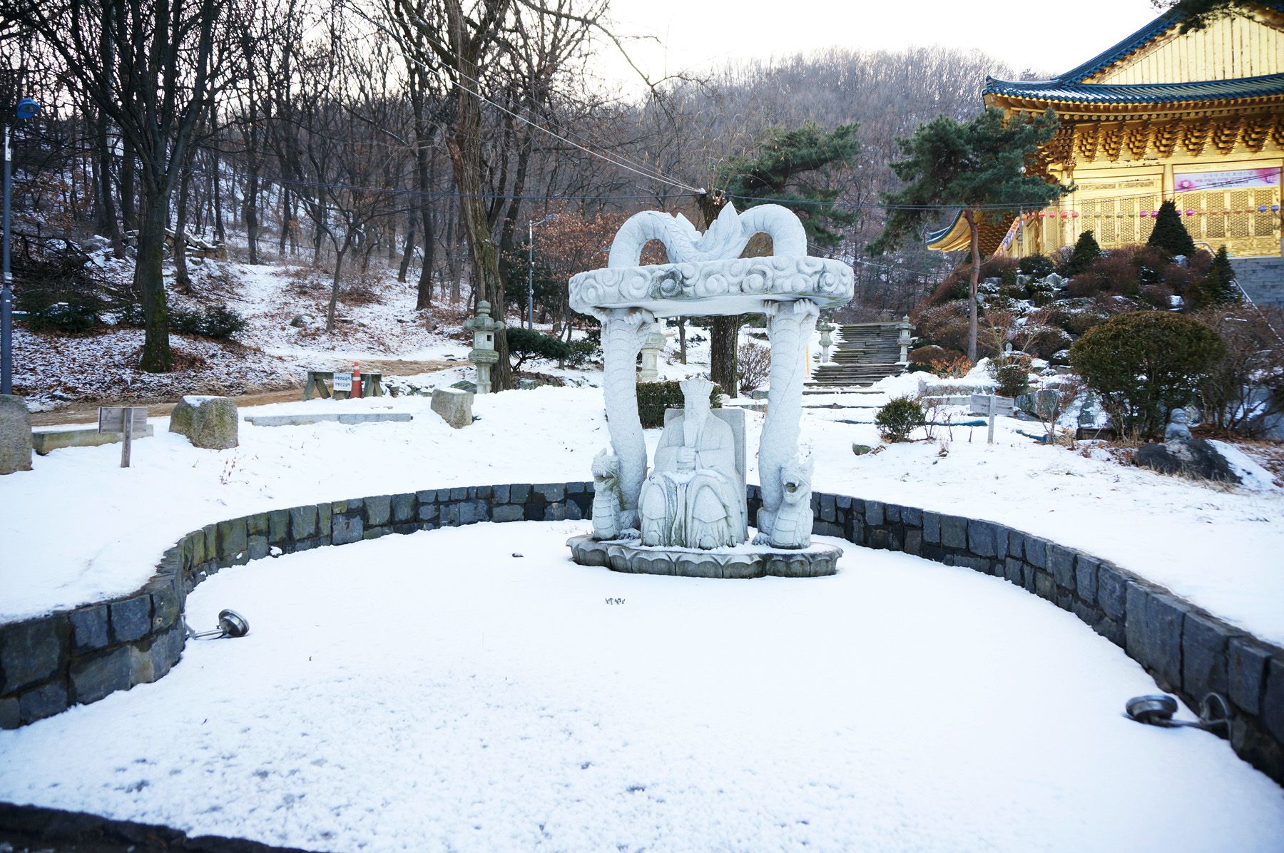 황금법당으로 가기 전에는 용왕정이라는 연못 위에 용왕상이 세워져 있는데요,