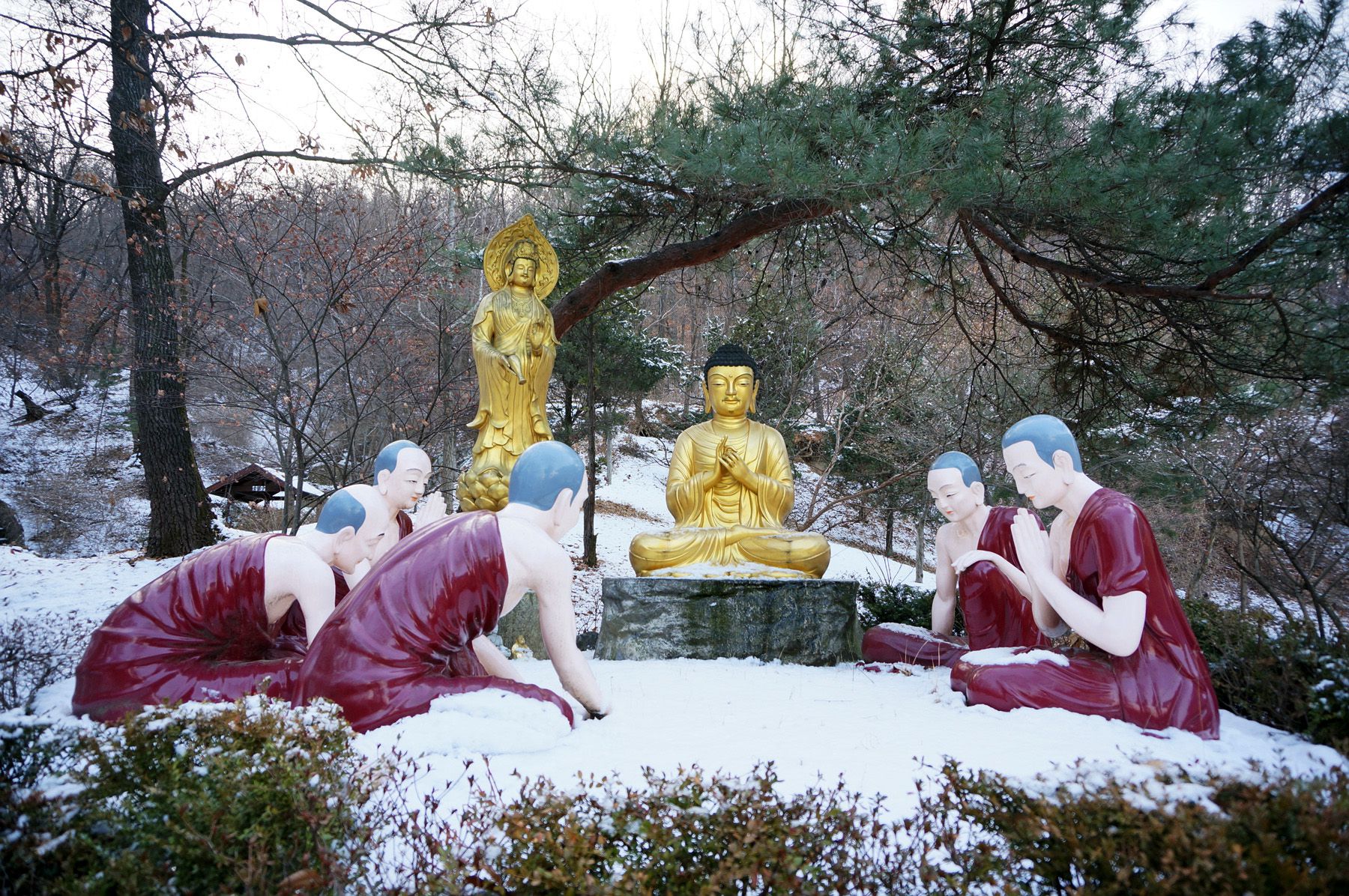 법당 안의 다섯 부처상처럼 이곳 다섯 스님의 모습도 각각 다 다릅니다.
