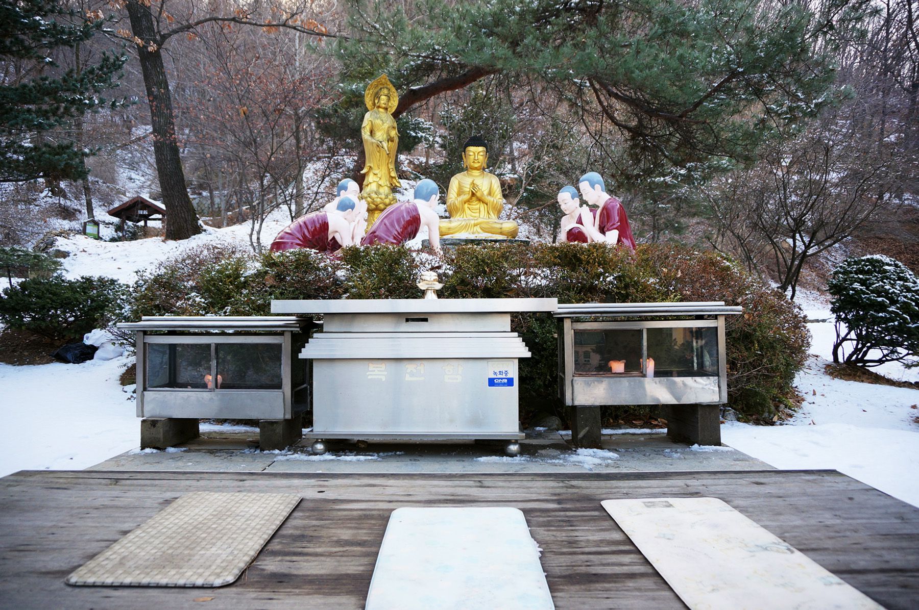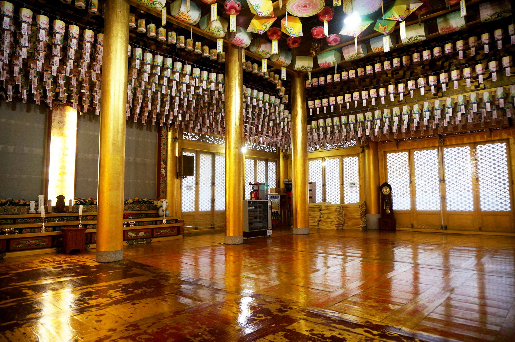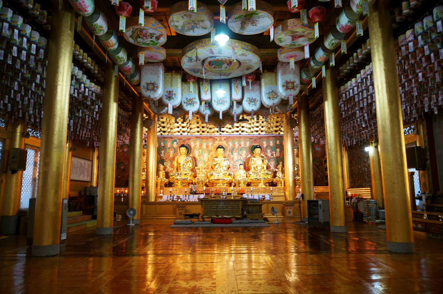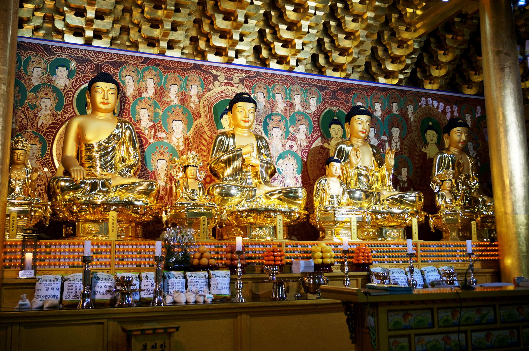 안에 들어오면 대규모 불단이 보이고 다섯분의 부처님이 보입니다.