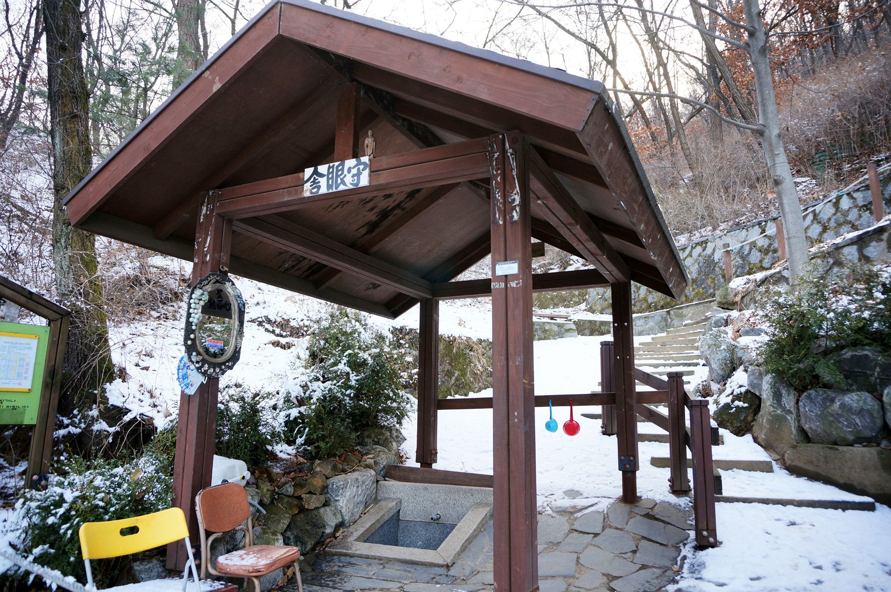 <눈을 지키는 곳>이라는 뜻의 수안사라고 부르는 약수터가 있어요.