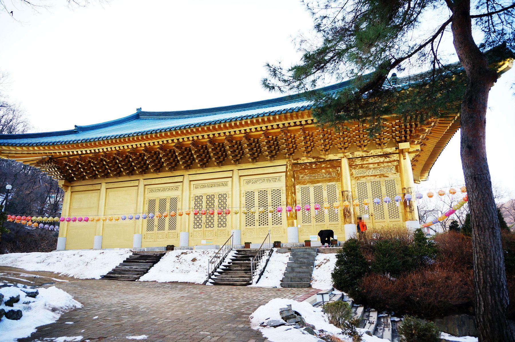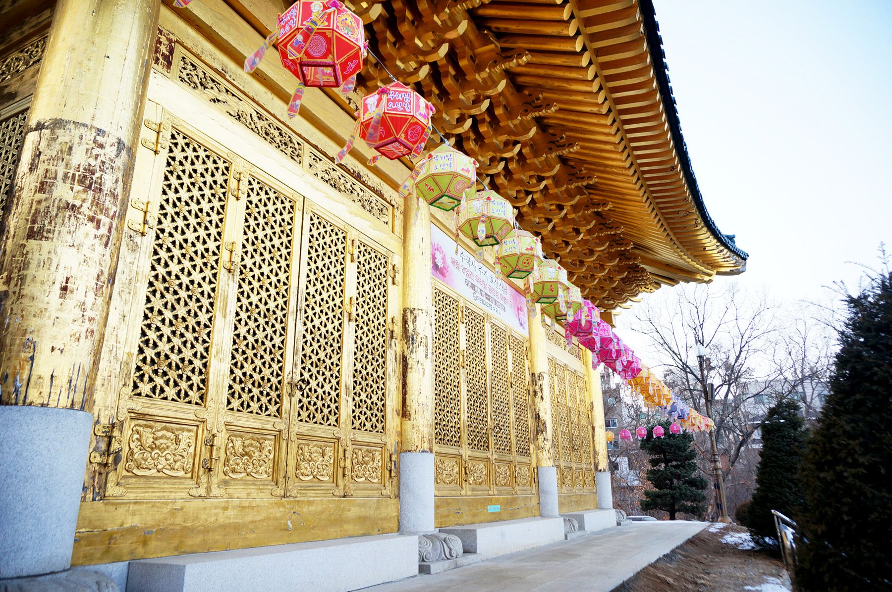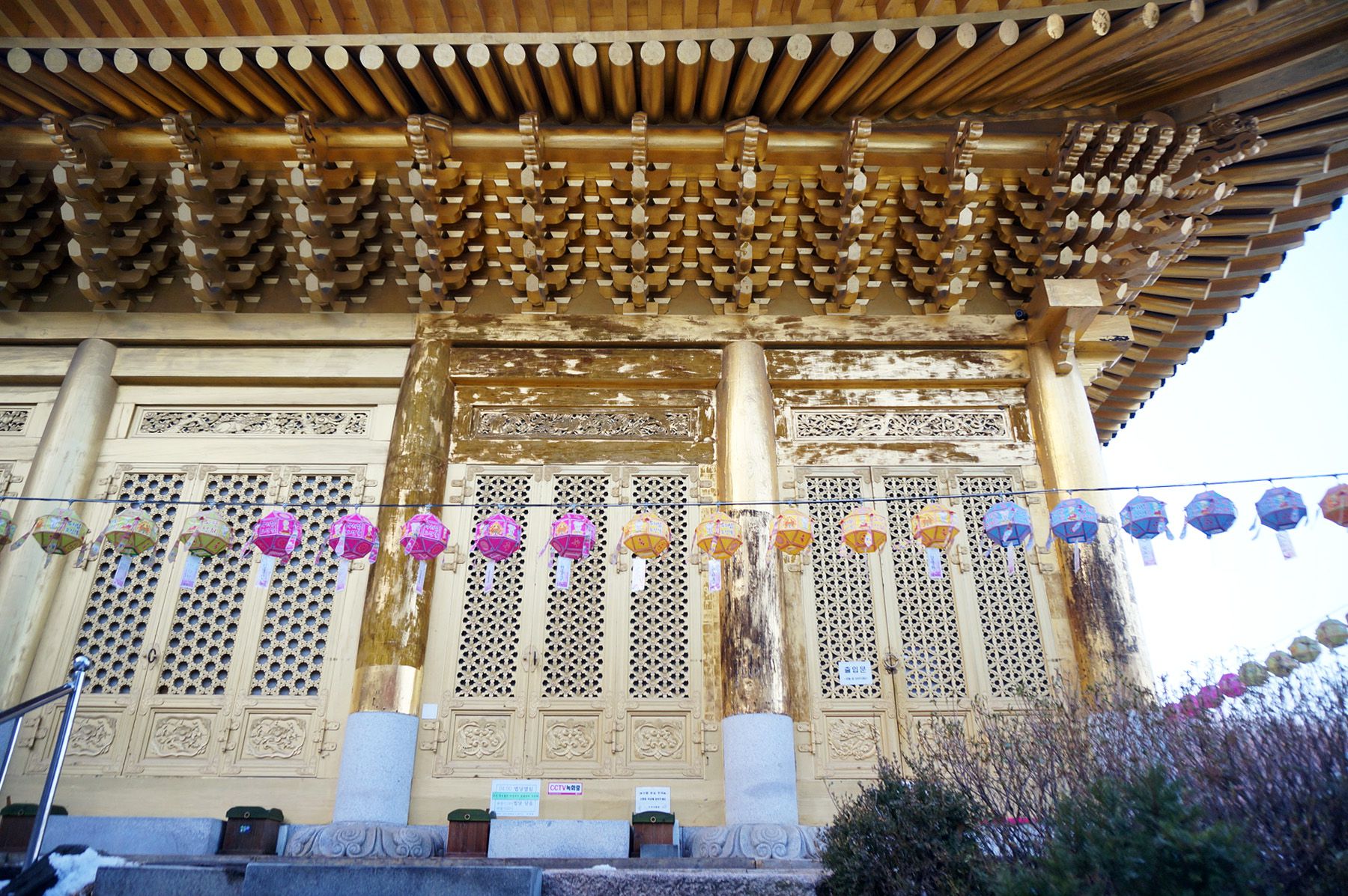 지붕과 기단석을 제외하고 모두 순금으로 입혀져 황금사찰로 불리우고 있습니다.