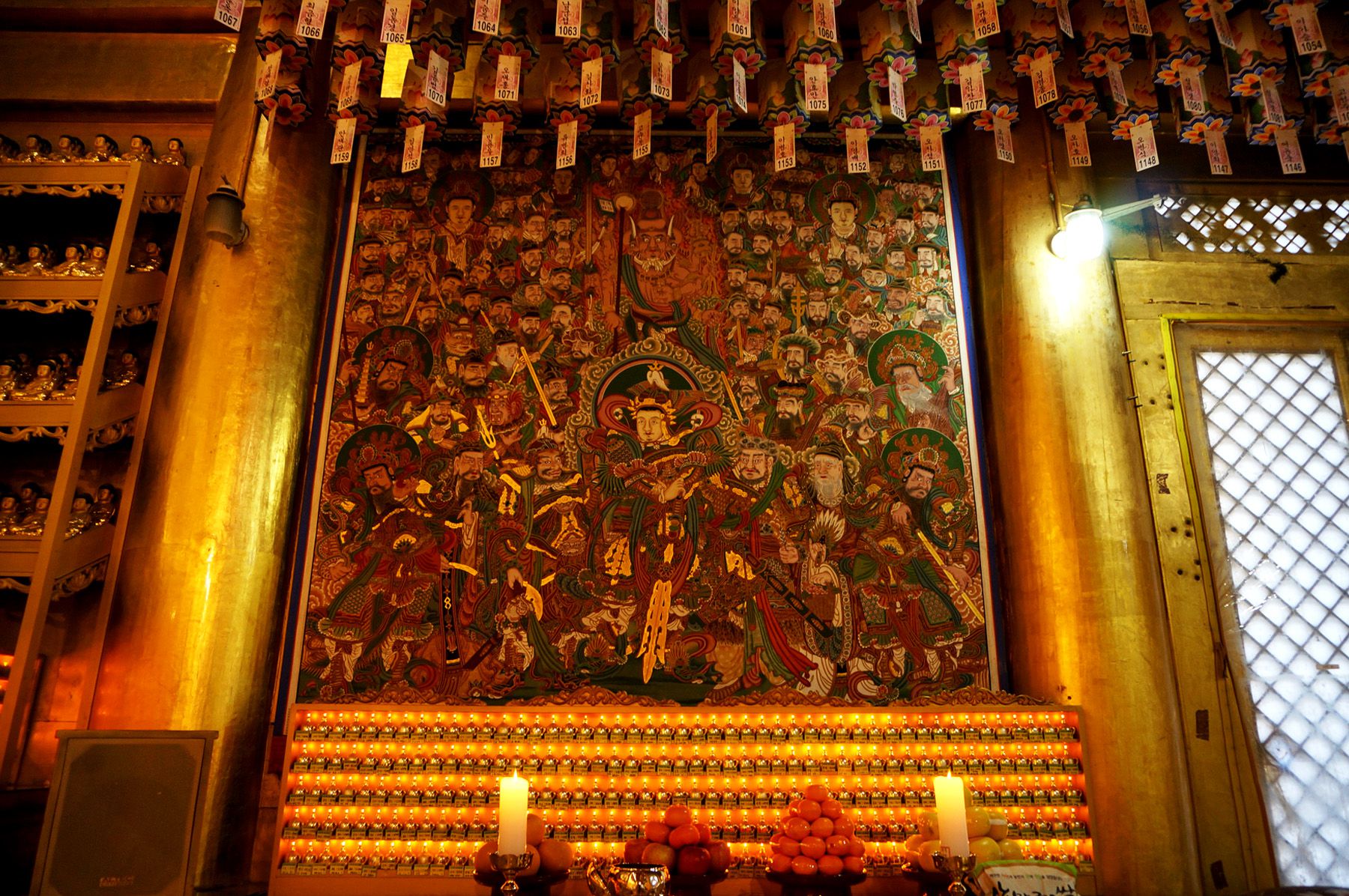 각각 다른 표정과 손모양들의 불상 앞에는 명호가 붙어있어 초보자도 이름을 쉽게 알 수 있어요.