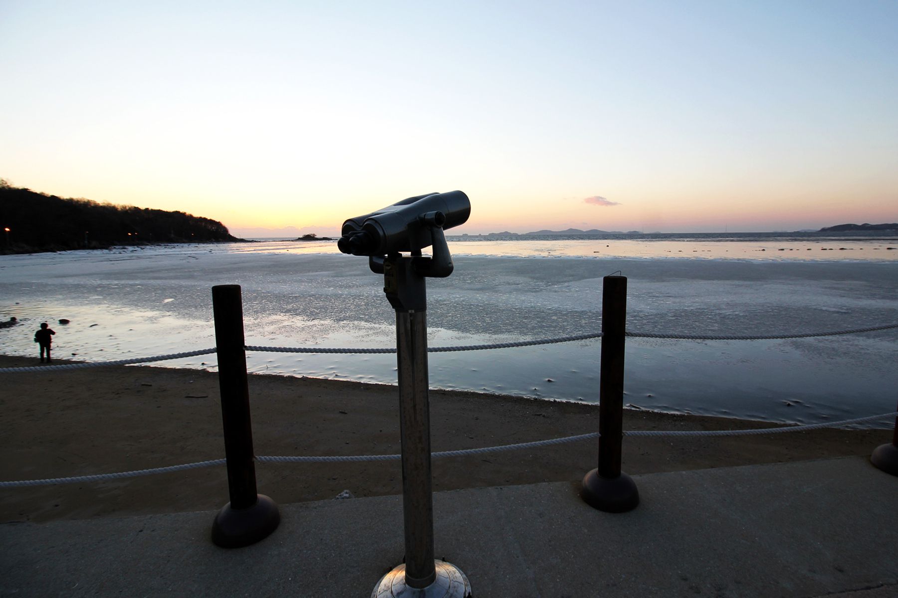 일몰을 감상할 수 있는 망원경 500원의 사용요금이 있지만