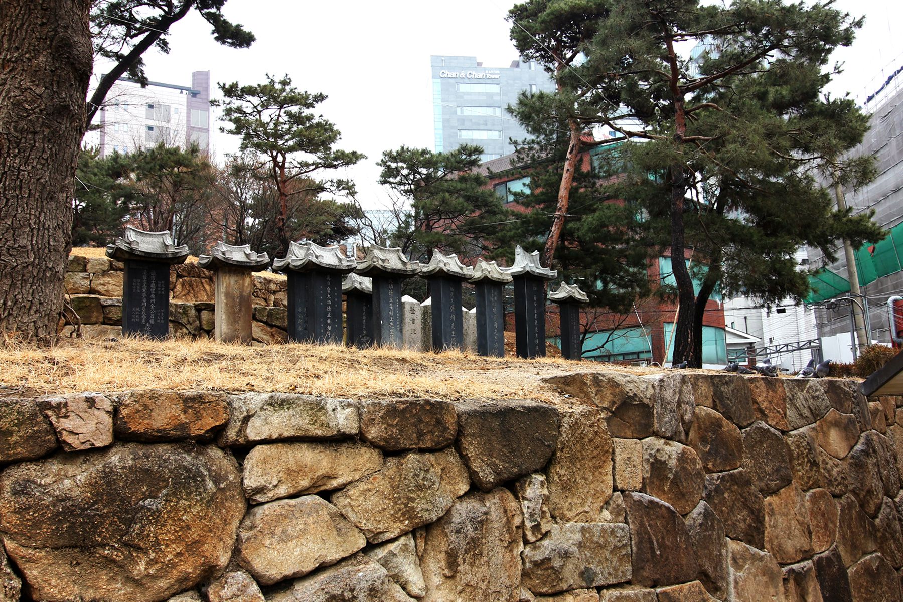 강남의 고층빌딩 사이 수도산 자락에