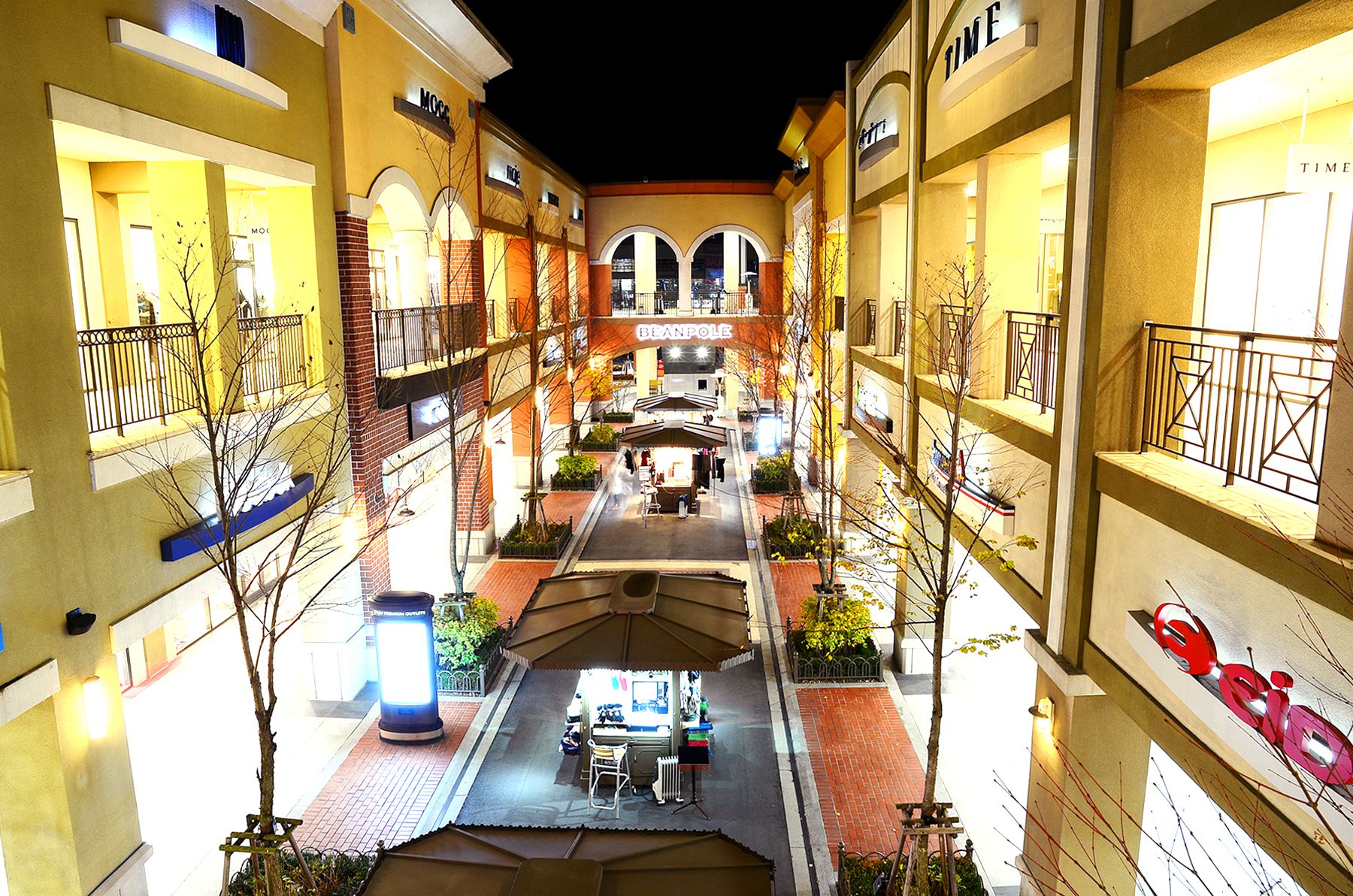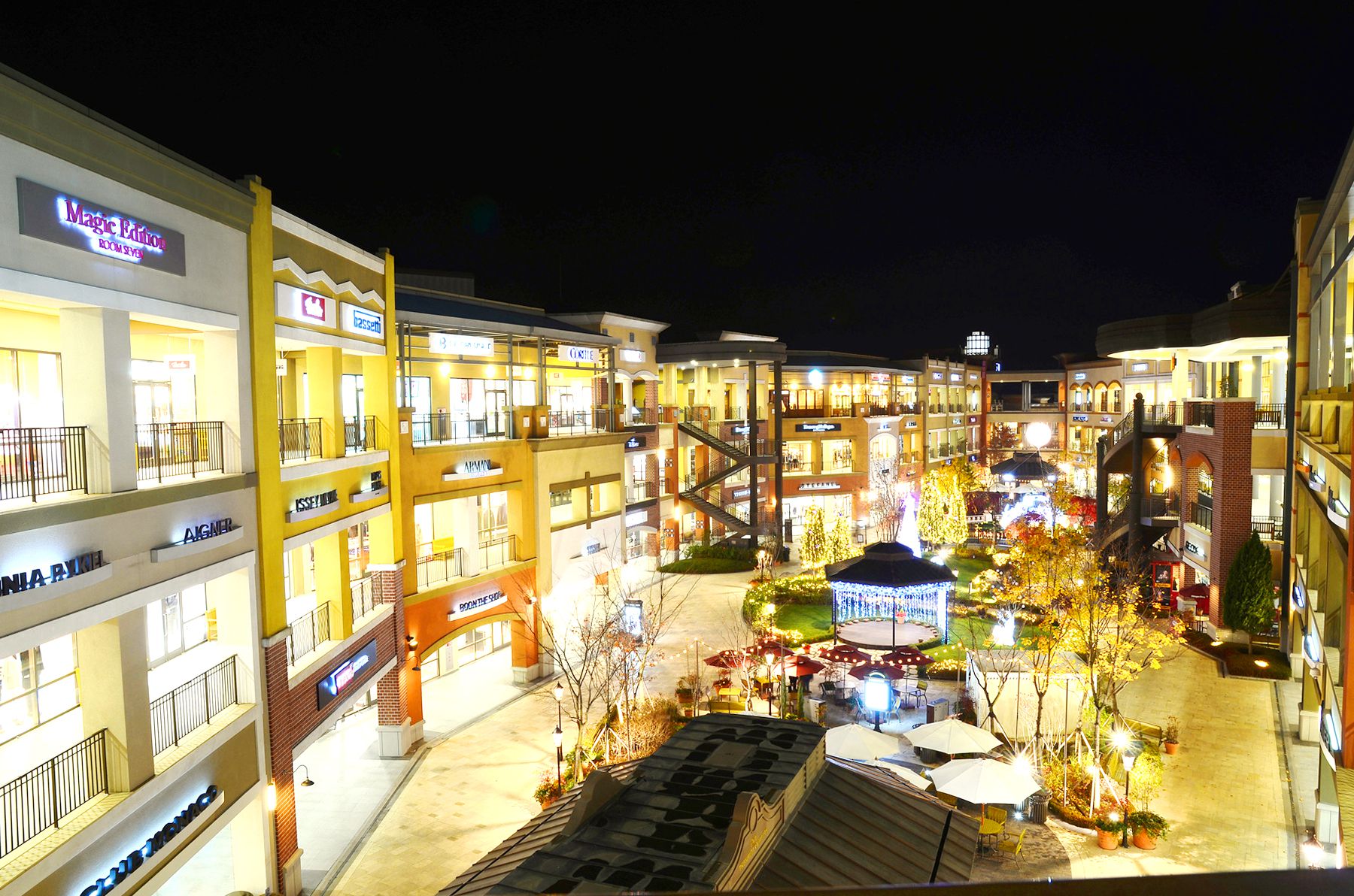 날이 어두워지면서 아울렛에 조명 빛이 들어오면 더욱더 아름다운 장면을 연출합니다.