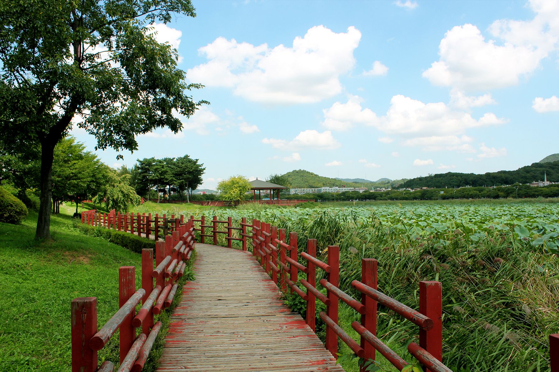 잘 정비되어 있는 산책로 옆에는 자연 그대로인 듯한 화랑저수지가 드넓게 펼쳐져 있습니다.
