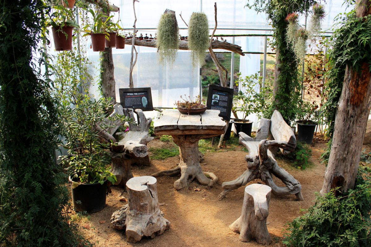 산들소리수목원에는 갖가지 식물들뿐 만이 아니라 나무로 만들어진 예쁜 조형들도 있습니다.