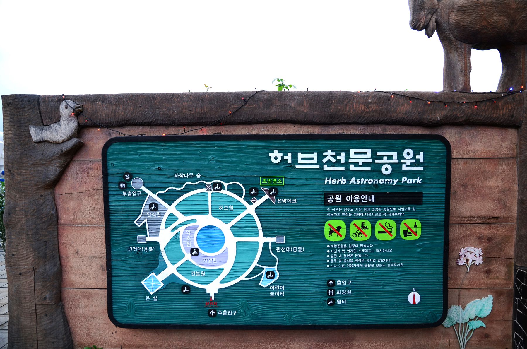 또한 허브천문공원은 하늘과 땅을 잇는 해, 달, 별, 바람, 구름, 비, 서리, 눈 등의 형상에 따라 조성된 곳으로