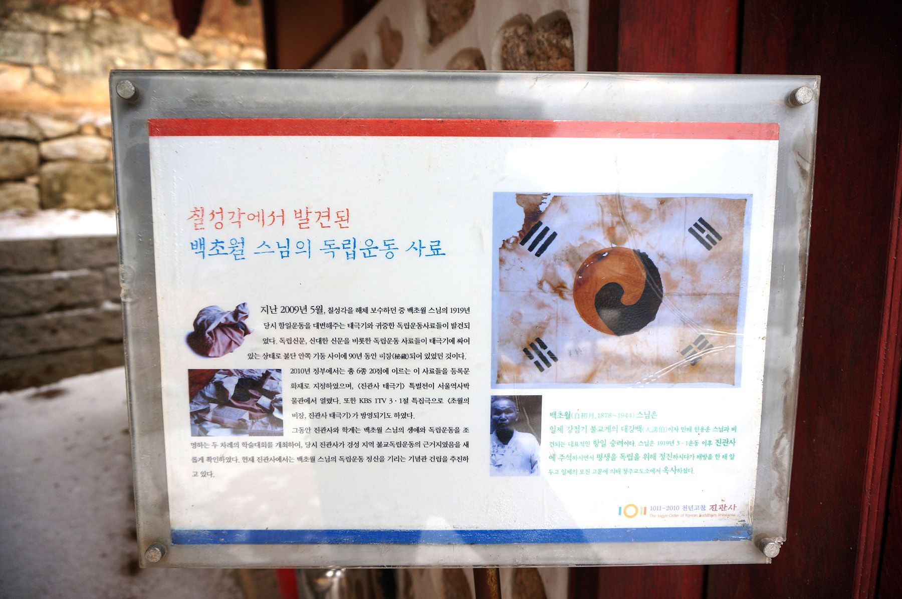 이 유물들은 항일운동을하다가 청주교도소에서 옥사한 진관사 백초월 주지스님이 숨겨놓은것으로 추정되어집니다.