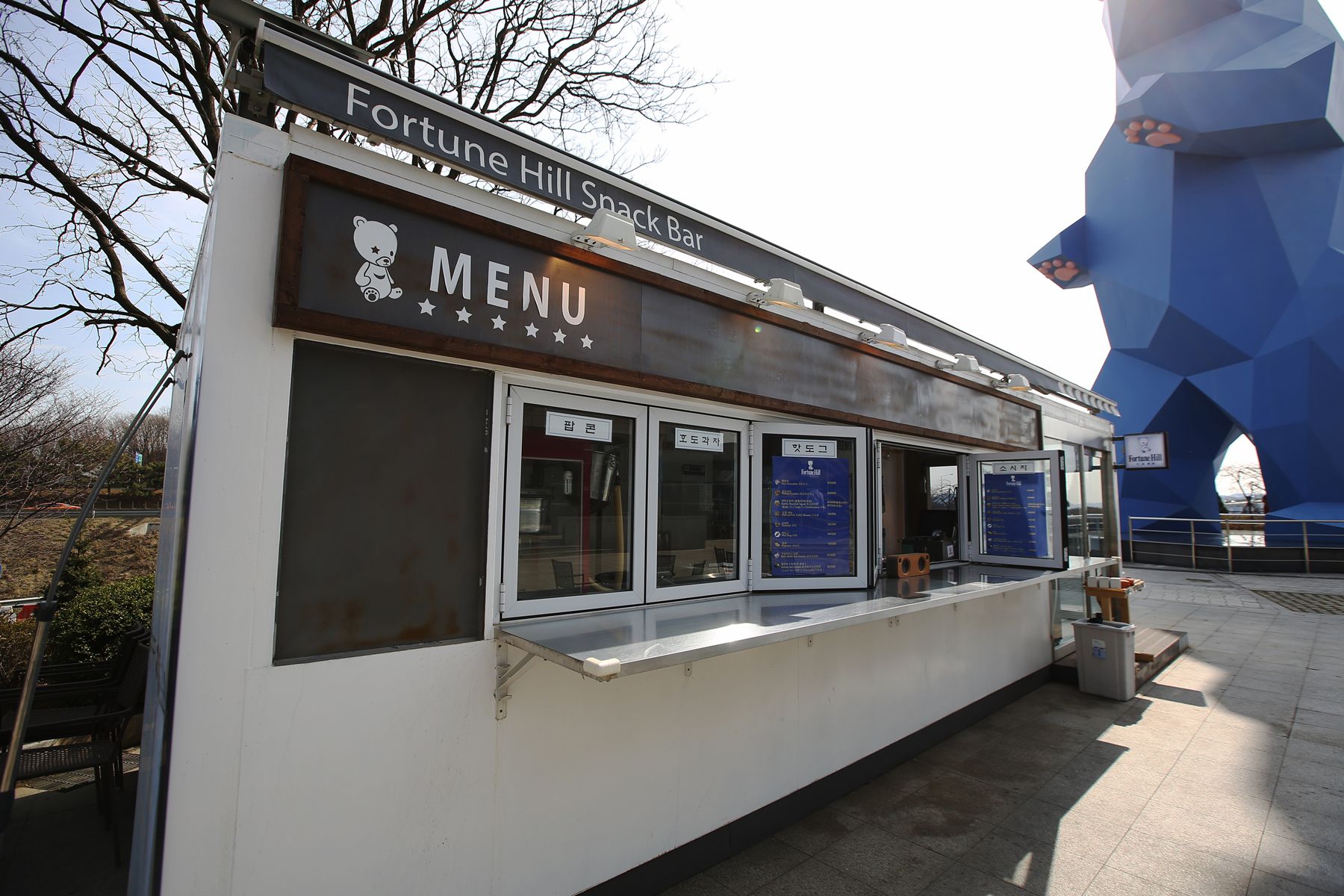 주차장에 주차 후 1층으로 올라가면 간단한 스넥바가 있고, 바로 옆에는 포춘베어가 관광객들을 맞이 하고 있습니다