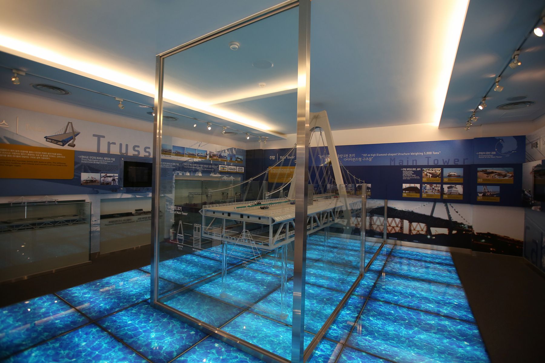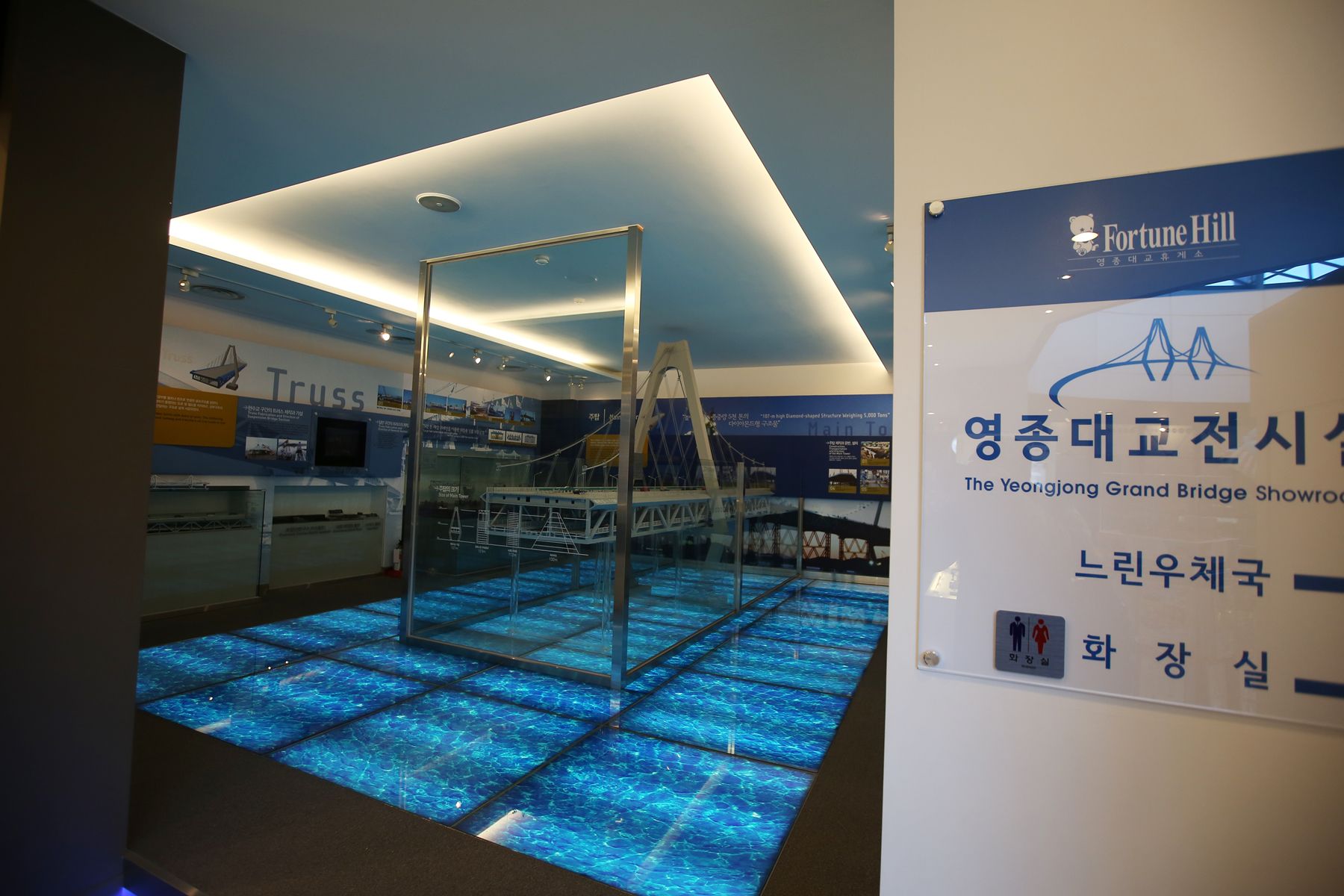 한쪽 전시실에는 영종대교의 홍보전시관이 있는데요 1:36 축적의 영종대교 모형이 놓여있습니다.