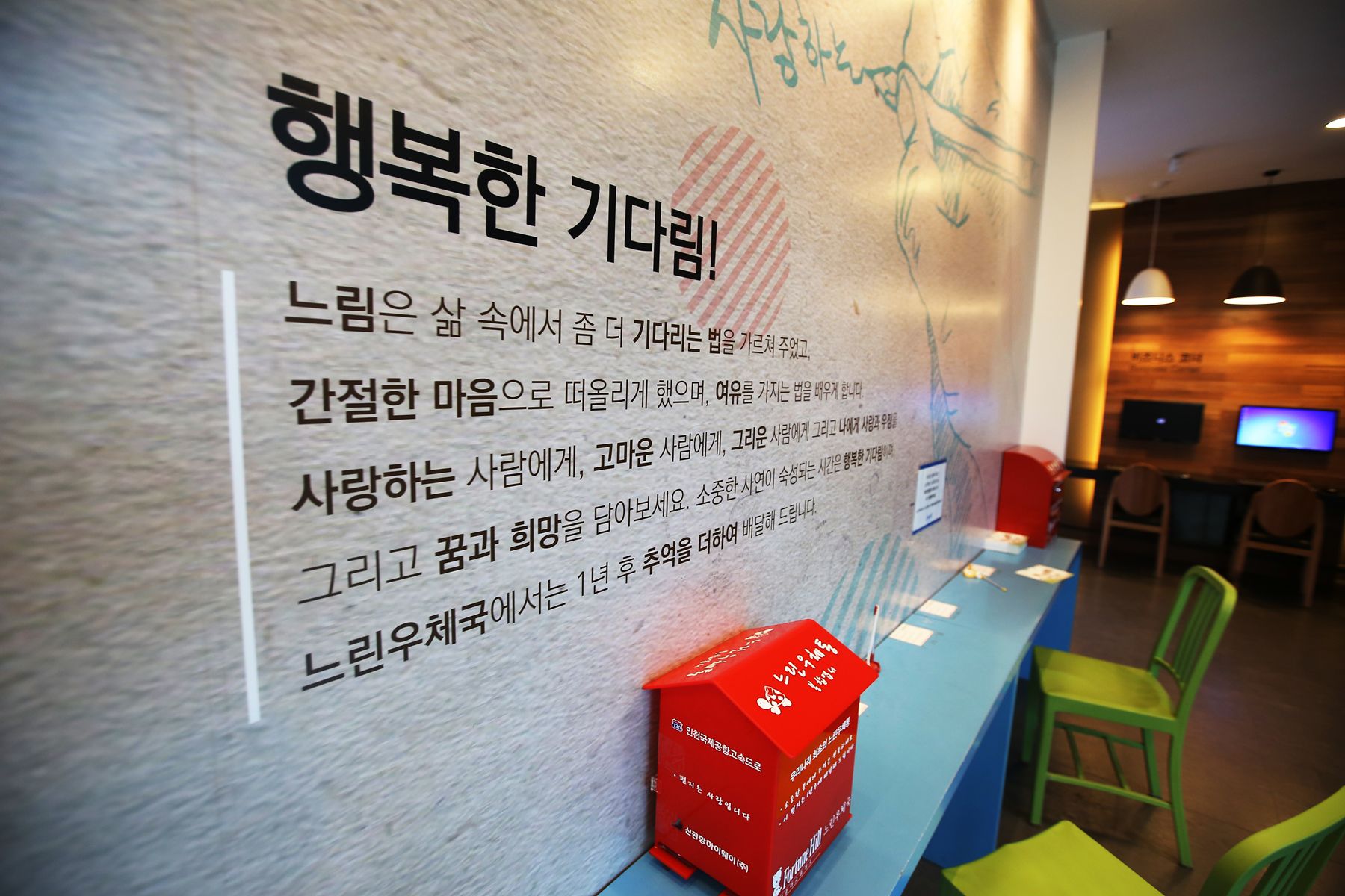 직접 손글씨를 써서 우체통에 넣기만 하면 1년 후에 배달이 된다고 하네요~