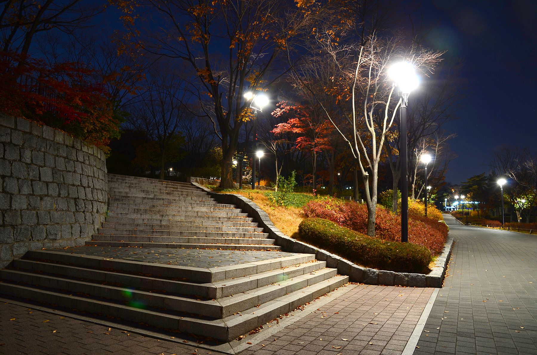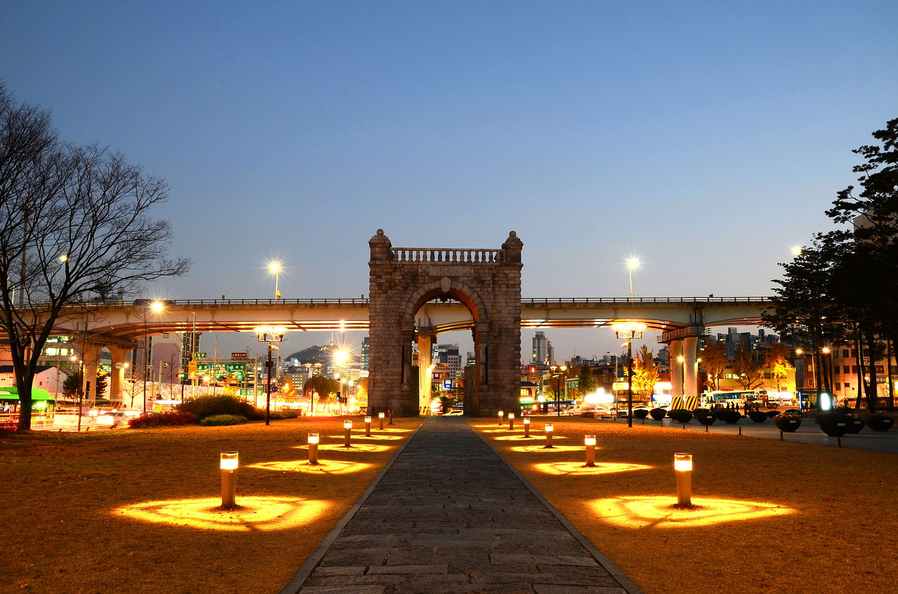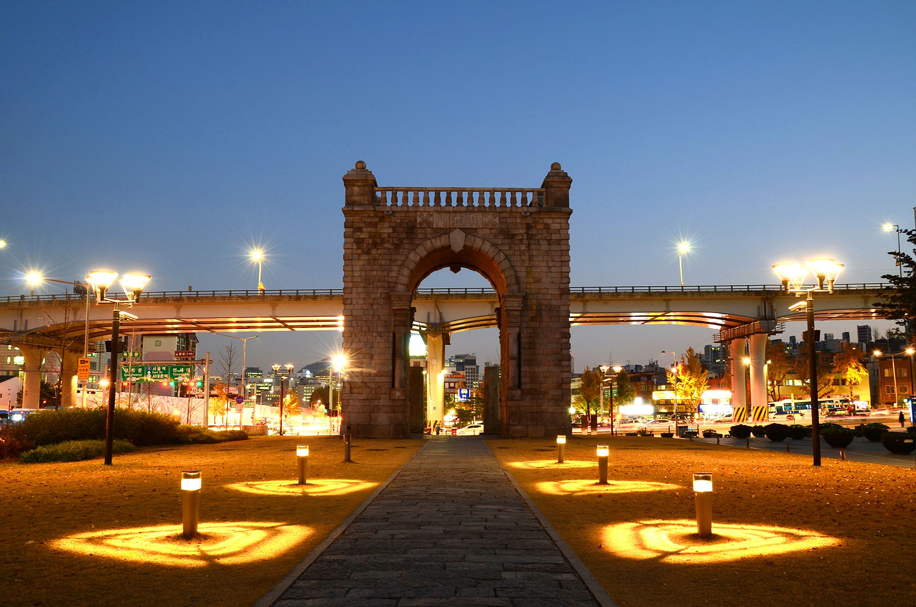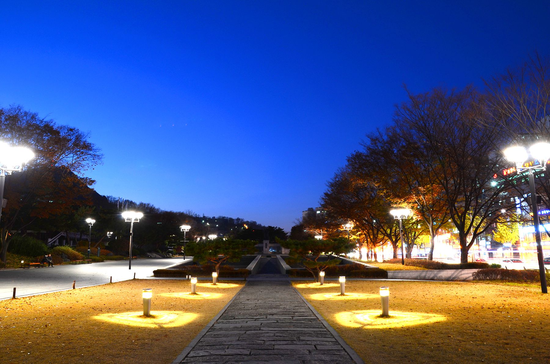 나무, 잔디와 은은한 조명이 아름다운 도시 속 서대문 독립문공원에서