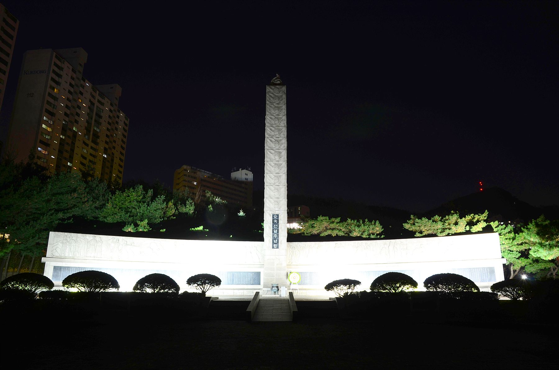 밤에 더 환하고 멋지게 빛나는 순국선열추념탑도 보이는데요,