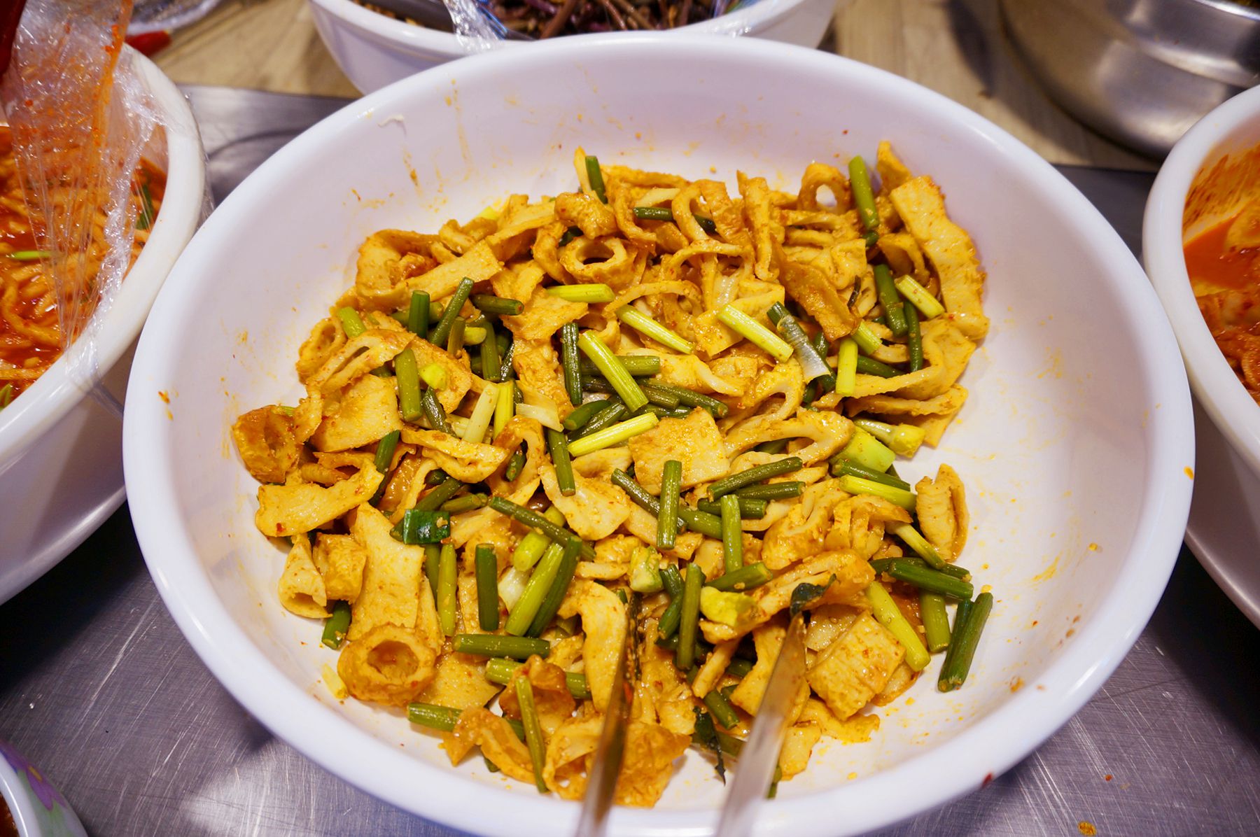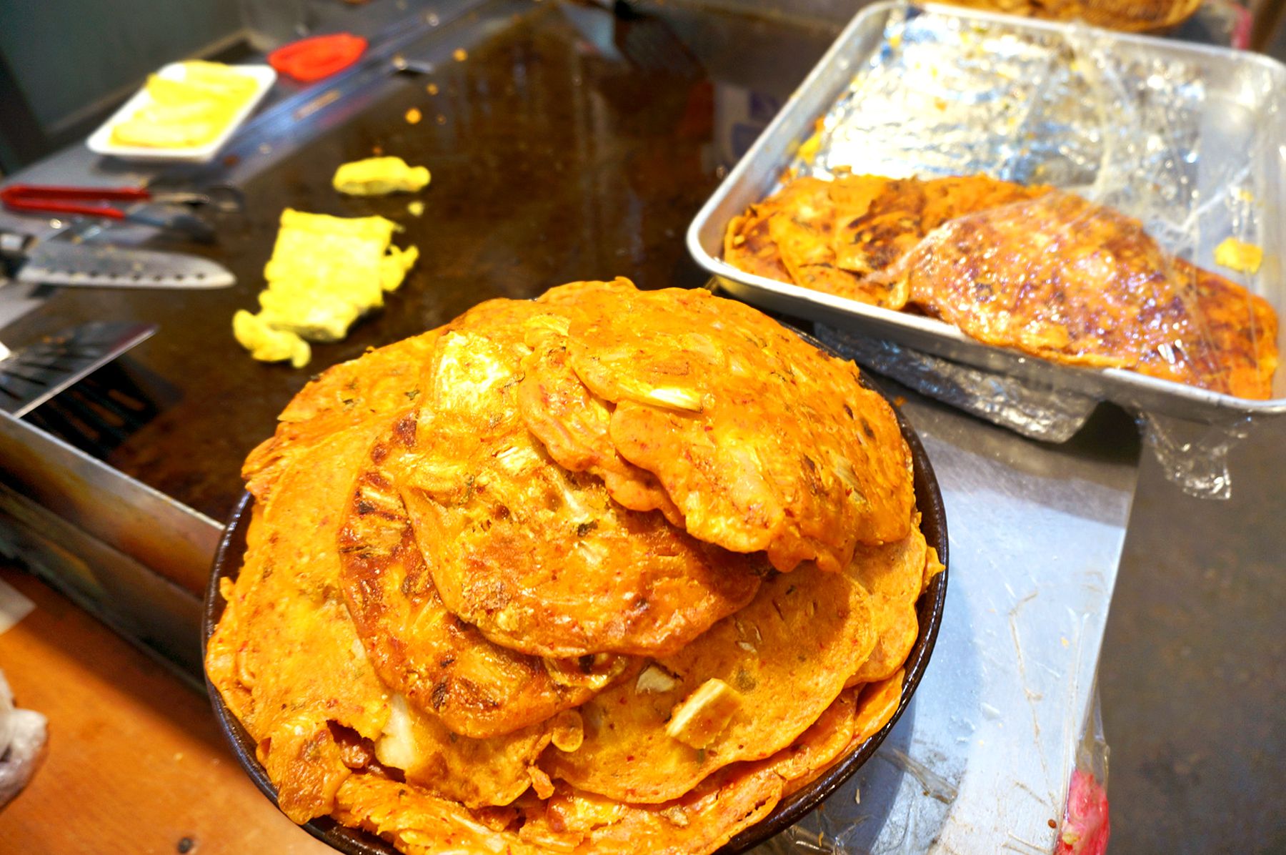 매콤한 김치부침개를 비롯하여 다양한 시장표 음식을 맛볼 수 있는 통인시장입니다^^