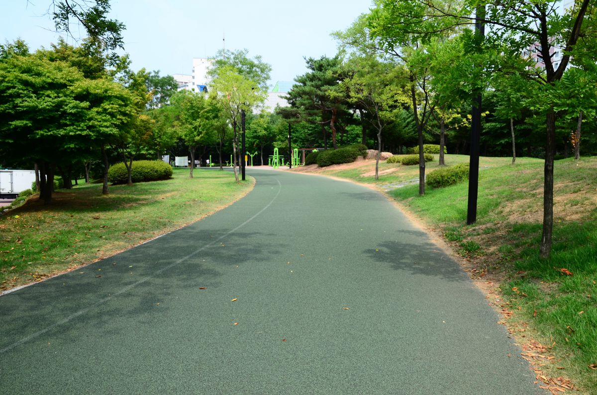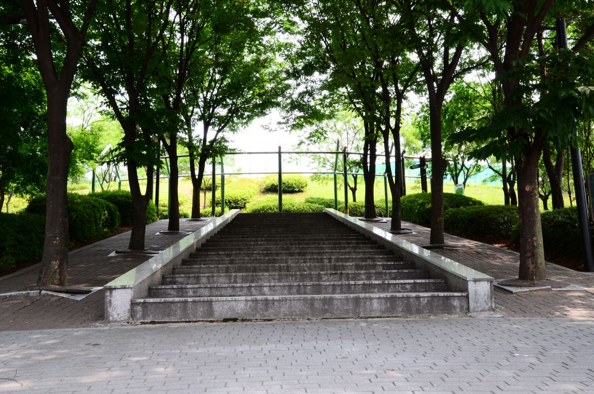 주차장에서 계단을 올라가면 공원의 트랙이 나오는데요