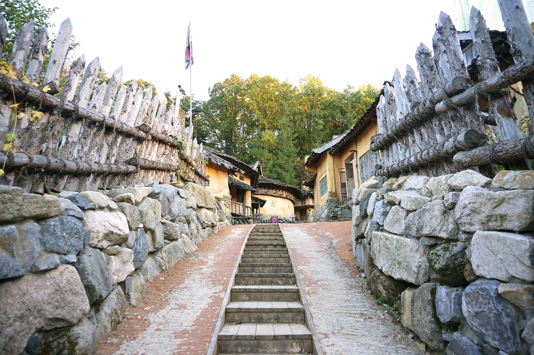 이곳은 대장간 마을로 들어가는 입구로 드라마 '태왕사신기' 촬영 장소로 외국인들에게 특히 인기 있는 곳입니다.