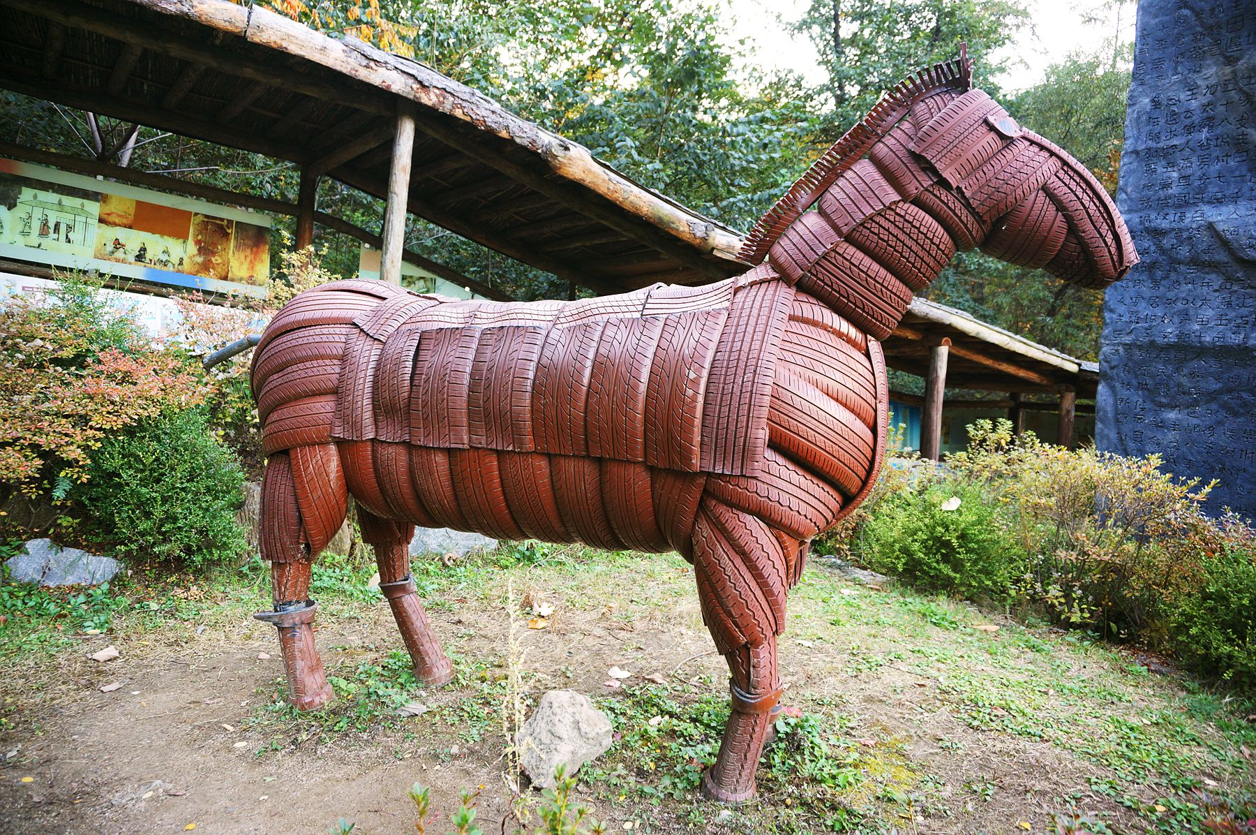 고구려 벽화에 그려진 대장장이를 근거로 상상하며 제작된 커다란 물레방아의 고구려 대장간이 세워져 있습니다.