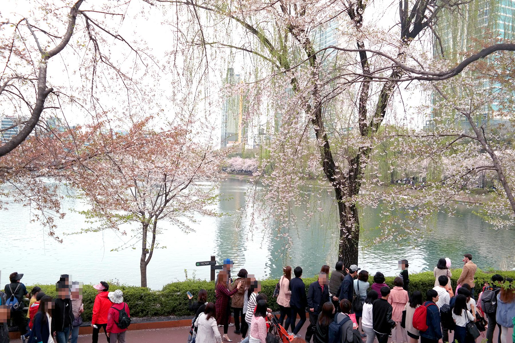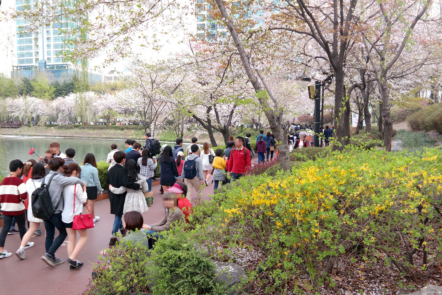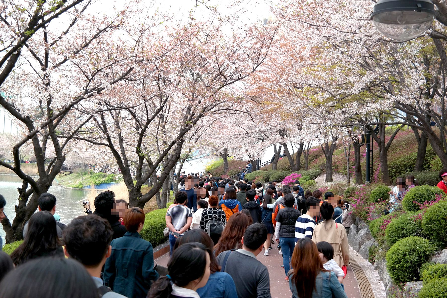 석촌호수 벚꽃축제에 몰려드는 인파가 아름다운 벚꽃길로 유명한 석촌호수의 인기를 입증하고 있습니다.