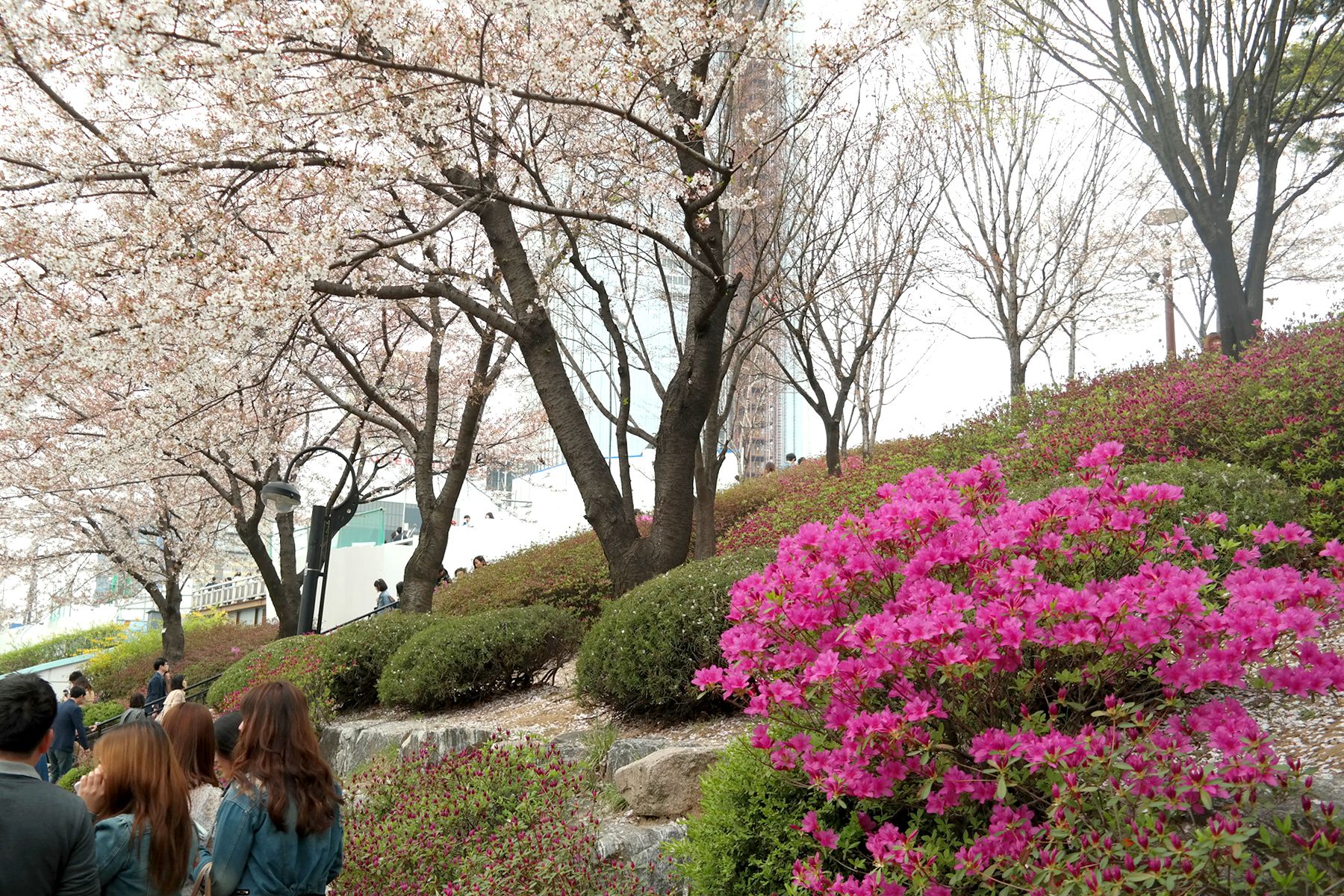연인, 가족들과, 혹은 친구들이 함께 와서 벚꽃 구경과 축제를 즐겨 사람들로 가득합니다.