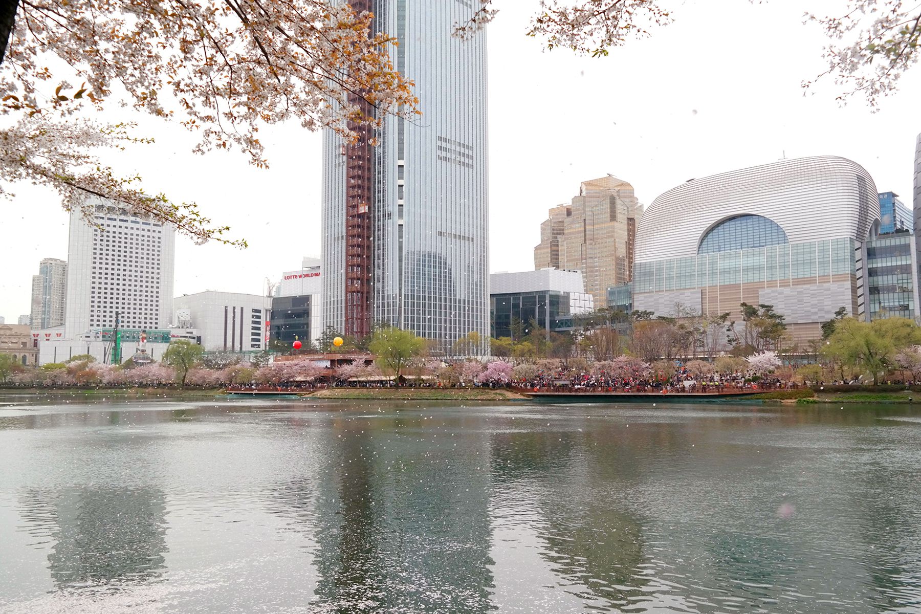 석촌호수 벚꽃축제는 아름답게 만개한 벚꽃과 석촌호수가 어우러져 아름다운 경관을 자랑하며